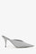 Balenciaga Silver Glitter Knife Mules. Slip-on. Pointed-toe. Tonal stitching.
