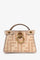 Fendi Beige FF Embroidered Peekaboo Bag Charm. Front turn-lock closure. Light pink suede interior lining. Single interior wall slip pocket. Removable chain strap. Gold-tone hardware. Front clip closure. Top handle.