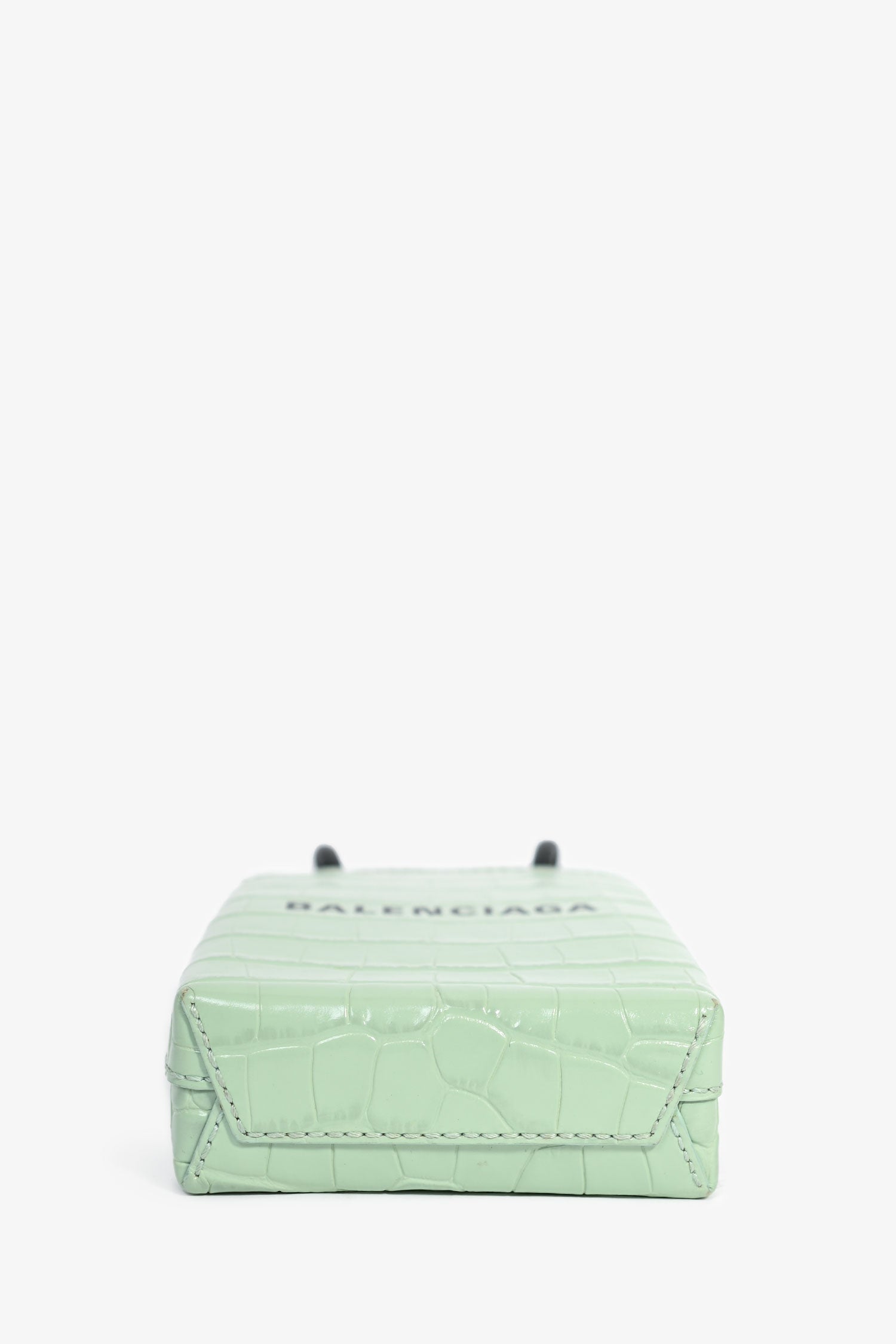 Balenciaga Green Leather Croc Embossed Logo Crossbody Mini Tote