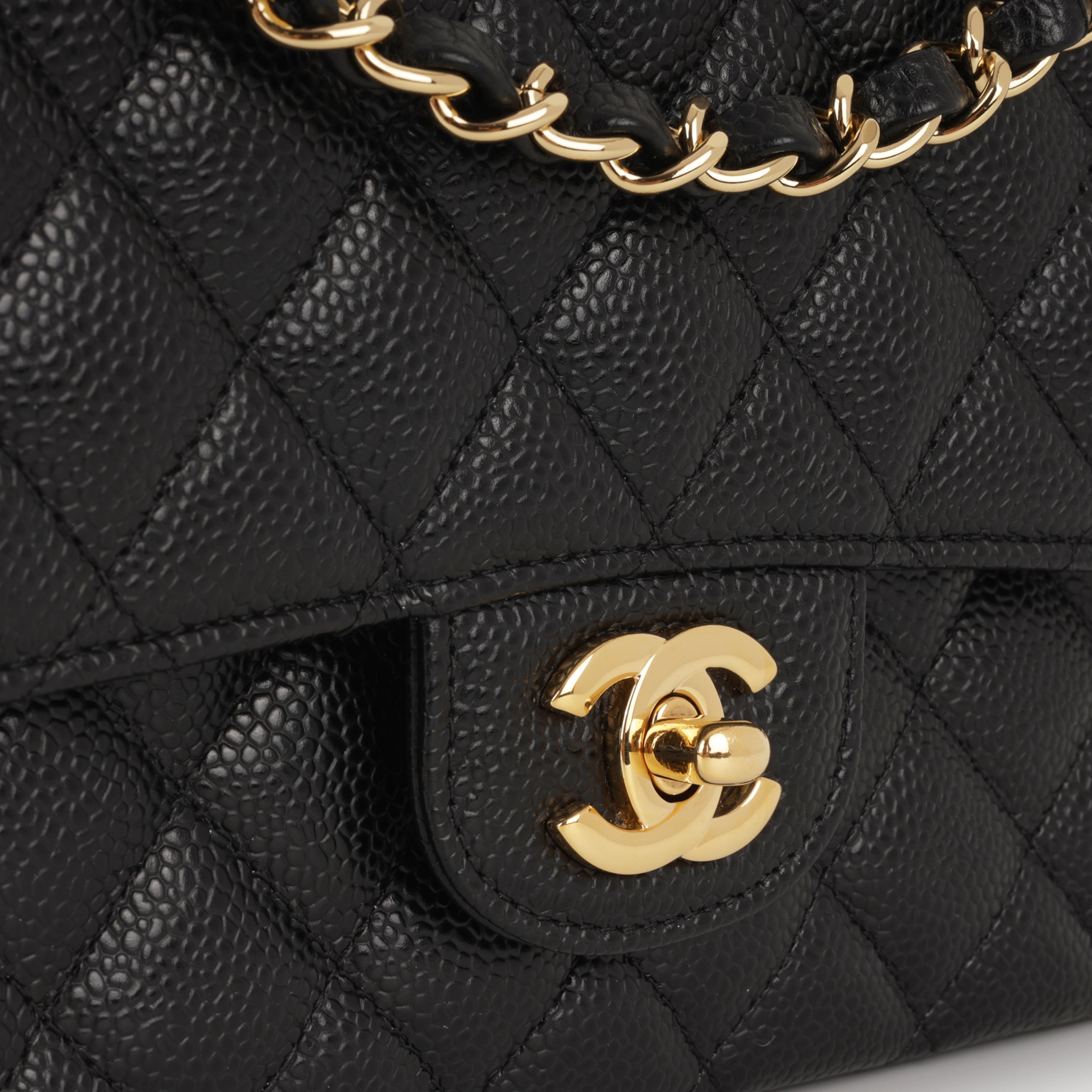 - Black quilted caviar leather
