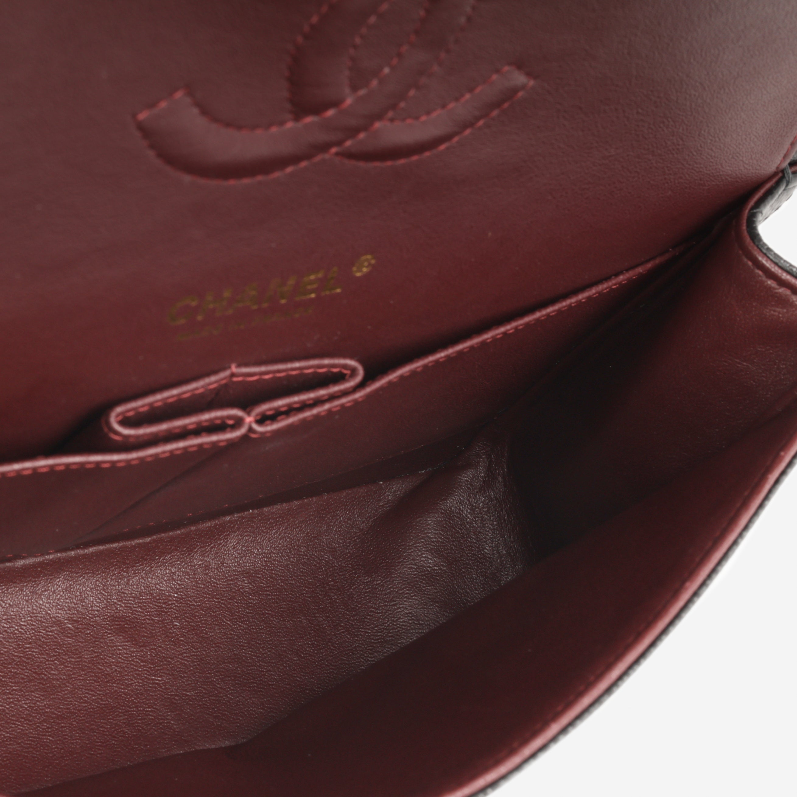 - Burgundy lambskin interior lining