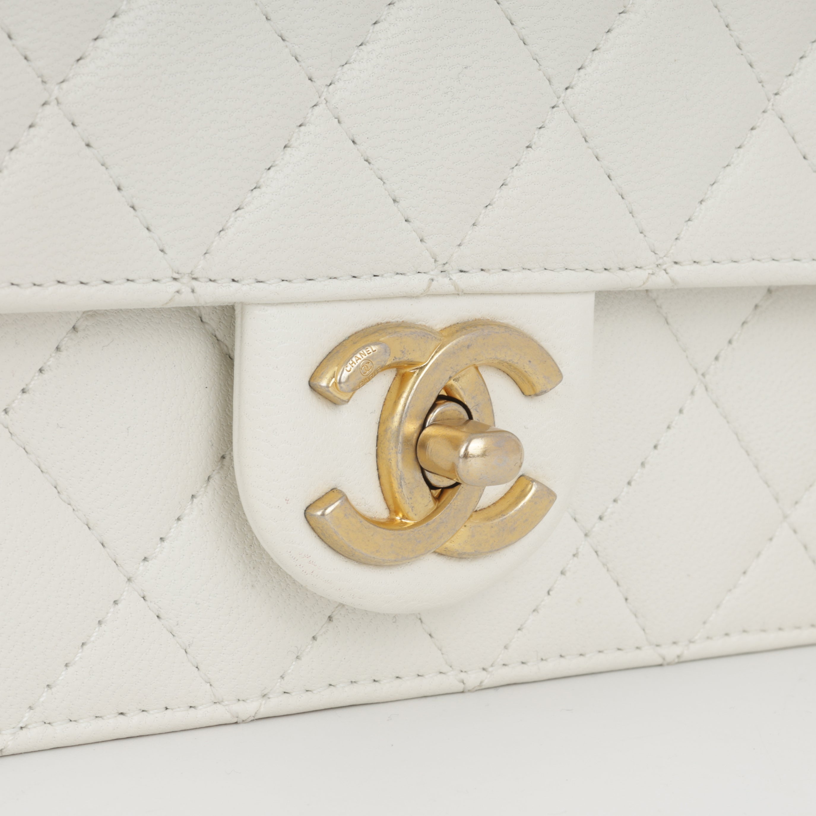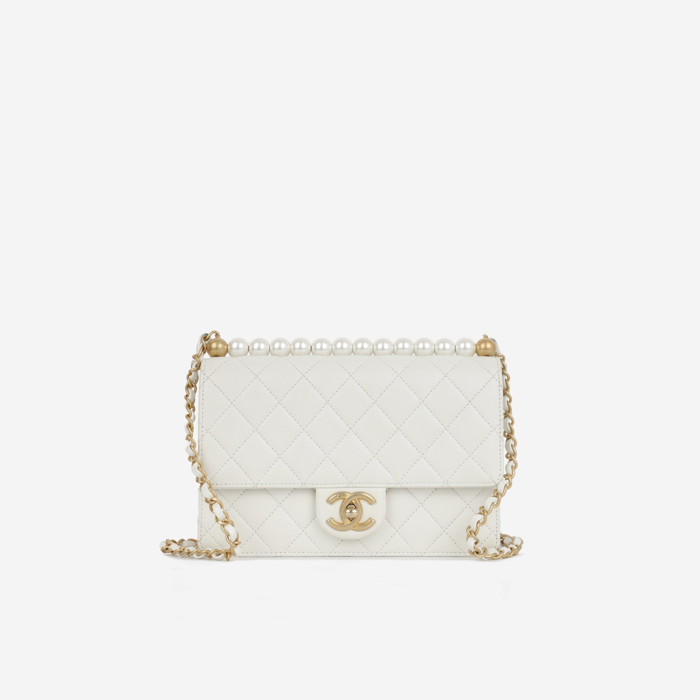 Chanel Medium Vertical Pearl Flap - White Calfskin | Antique Gold Hardware