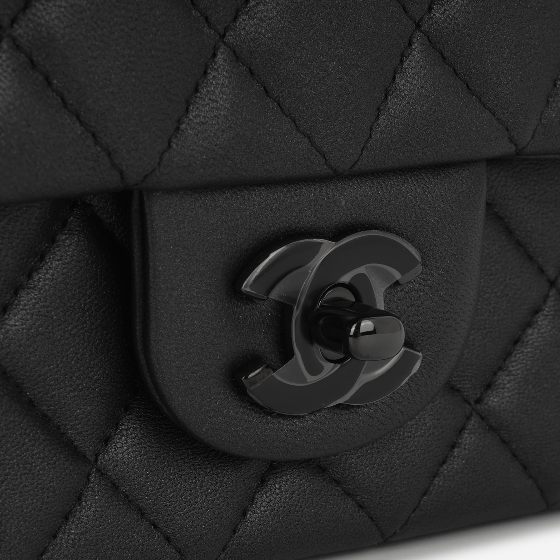 Crafted from luxurious lambskin, this rare Chanel So Black Mini Rectangular Classic Flap is a standout piece for any serious collector. With its sleek black-on-black hardware and compact silhouette, it offers an edgy twist on an iconic design. A highly coveted, hard-to-find style in pristine condition. Authentic and available now from a trusted reseller.