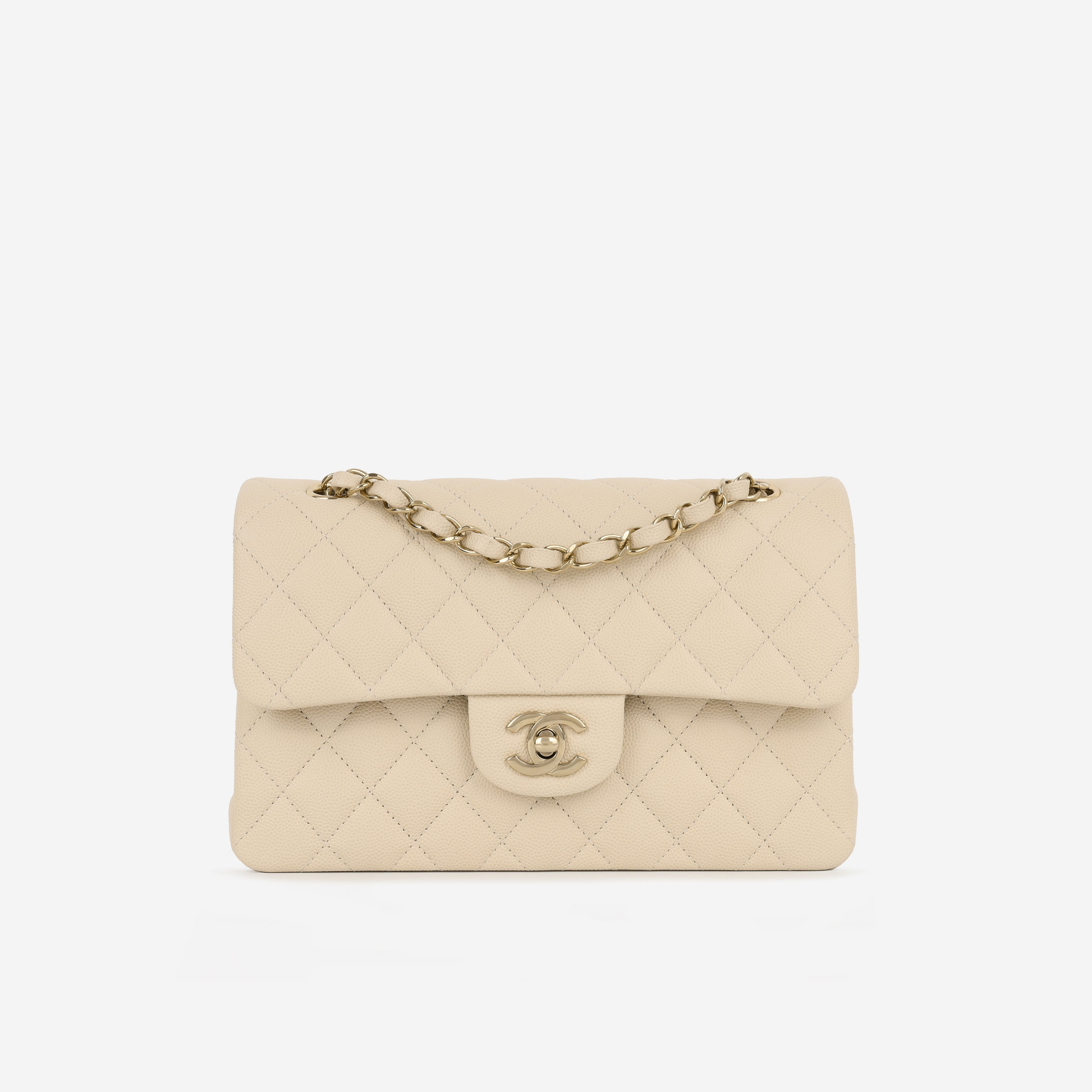 Chanel Small Classic Flap - Ecru Caviar | Champagne Gold Hardware