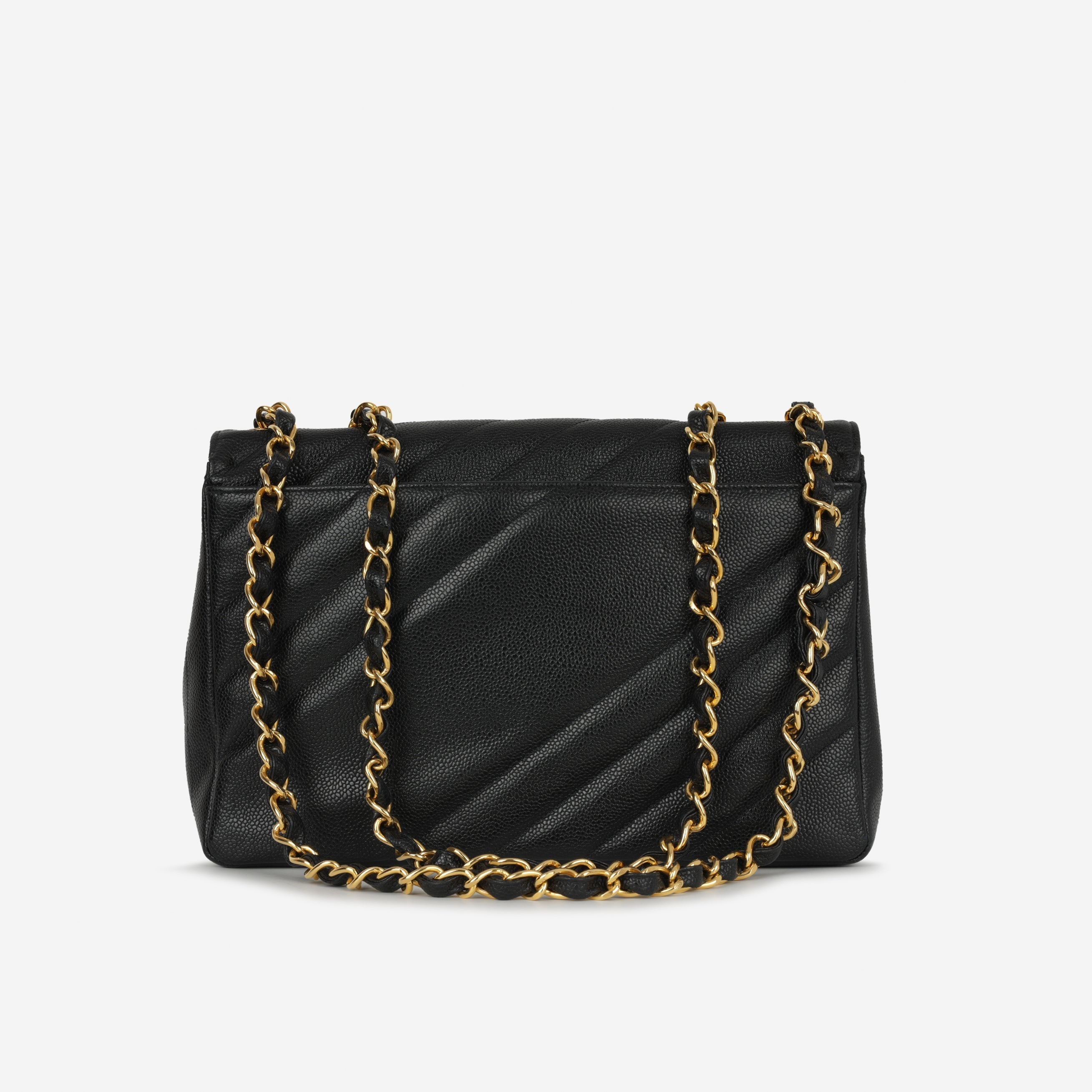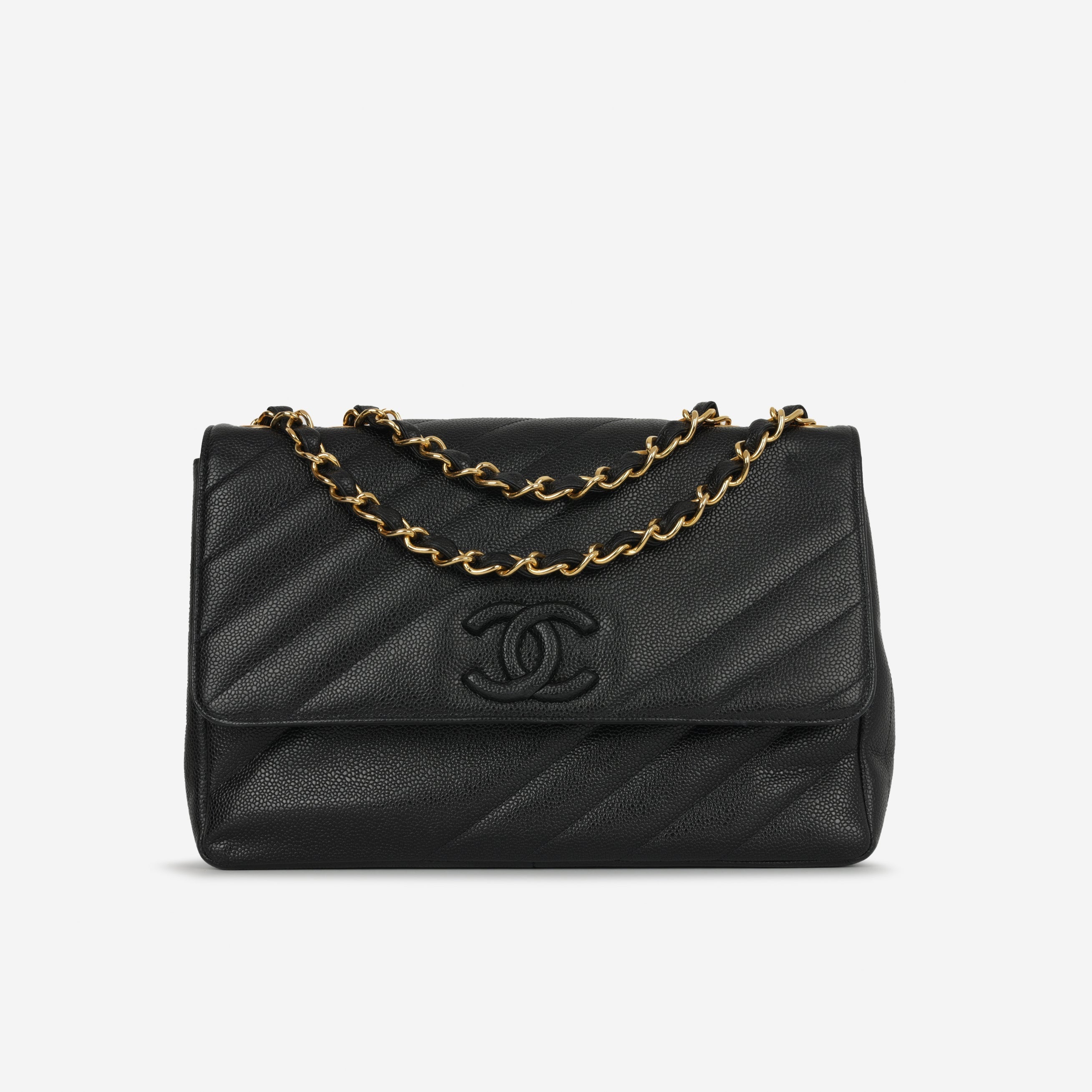 Chanel Vintage Jumbo Diagonal Flap - Black Caviar | Gold Hardware