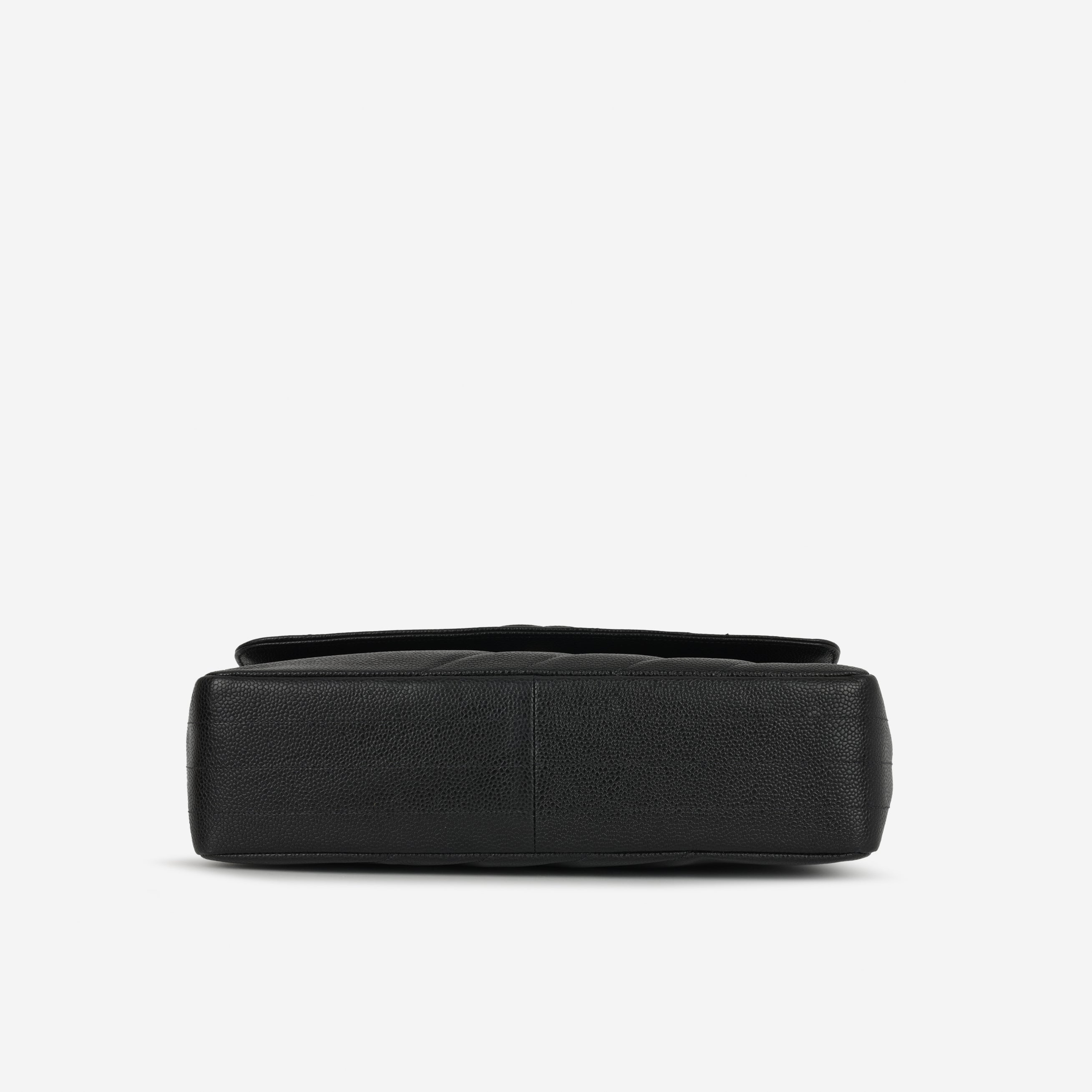 Crafted from durable, textured caviar leather, this jumbo-sized flap offers both structure and practicality. The oversized silhouette provides ample space for daily essentials, while the signature interwoven leather and gold-tone chain strap allows for shoulder or crossbody wear.