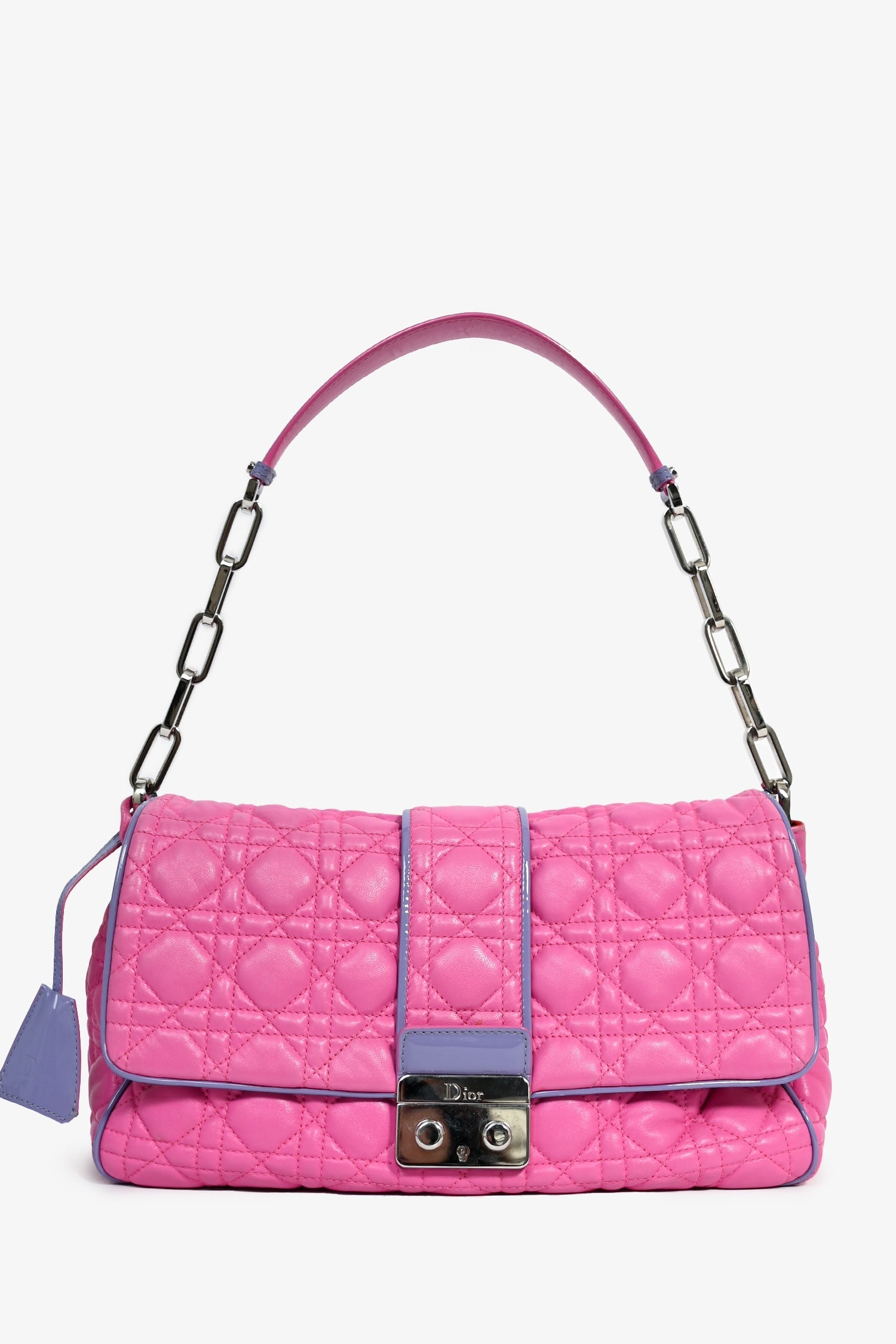Christian Dior 2012 Pink/Purple Patent Trim Cannage Leather Flap Shoulder Bag