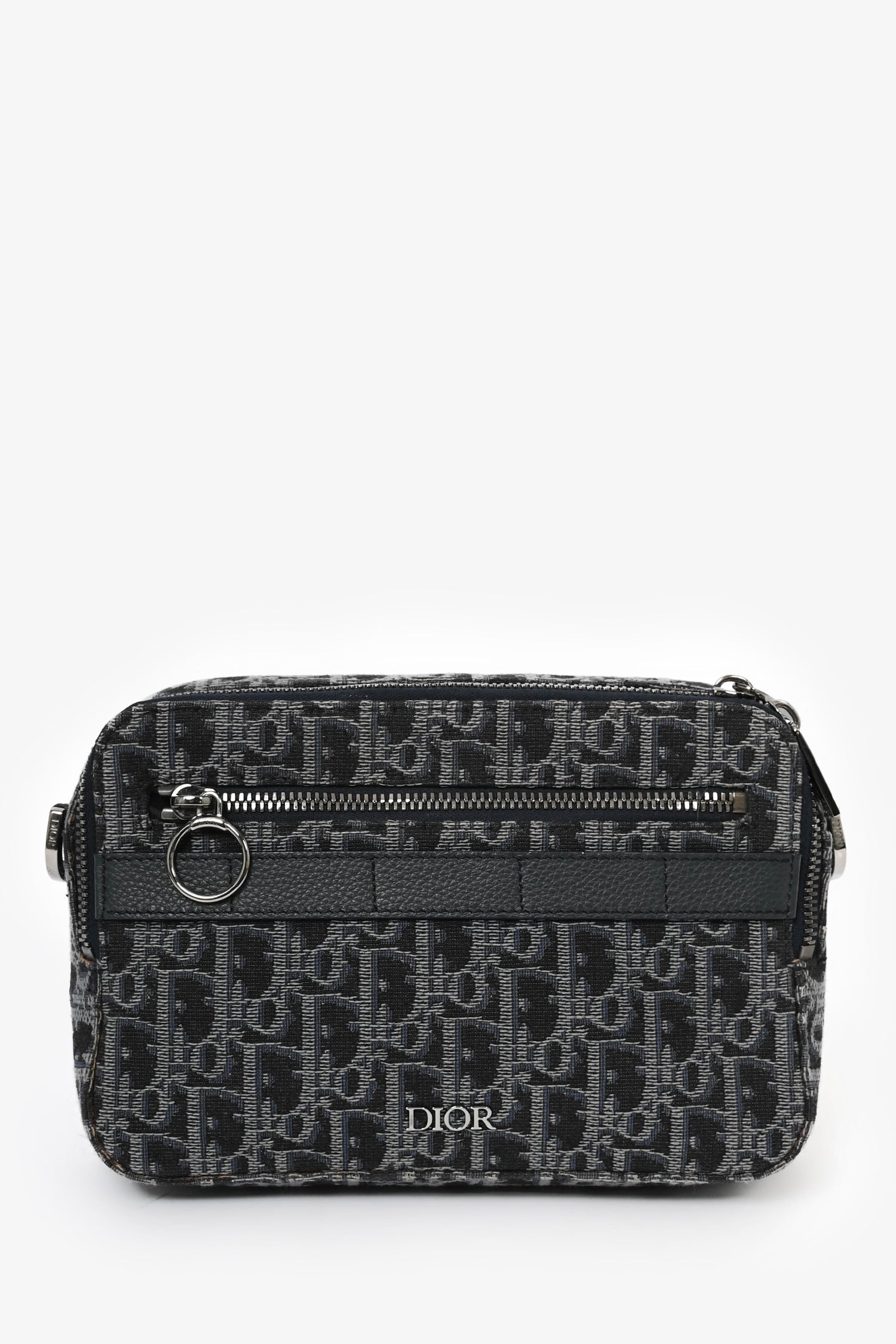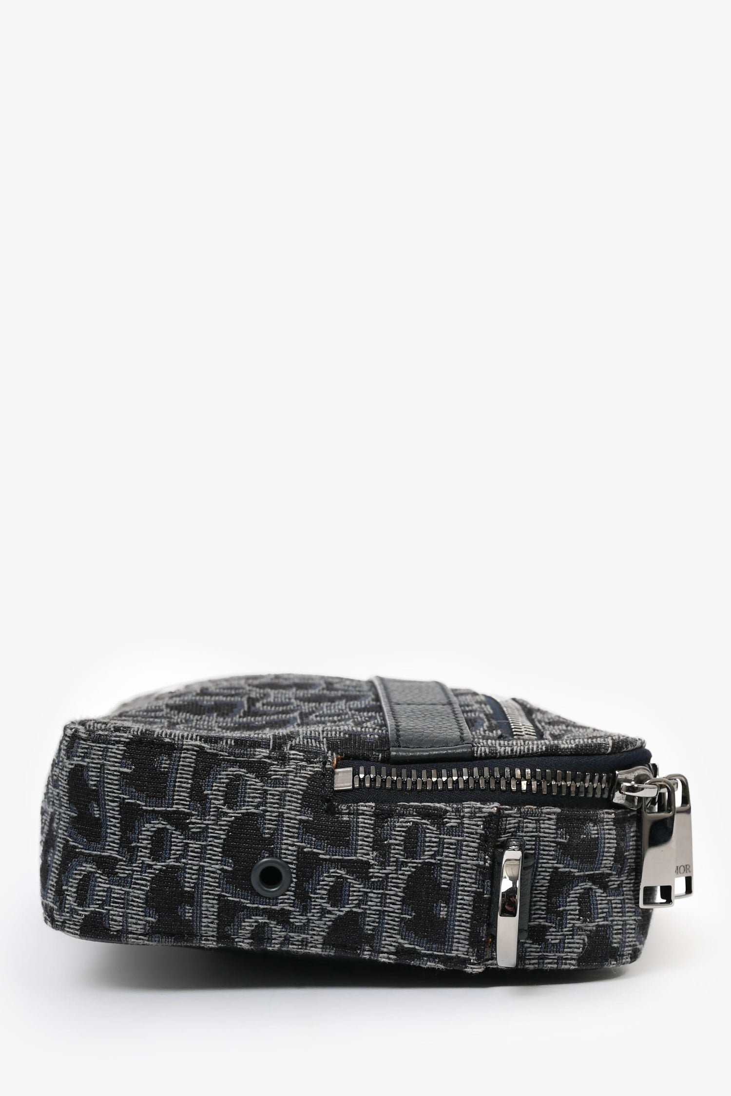 Christian Dior 2019 Blue Oblique 'Sac Safari' Messenger Bag. Top zipper closure. Front exterior wall pocket with zipper closure. Detachable and adjustable strap. Silver-tone hardware. Tonal stitching.