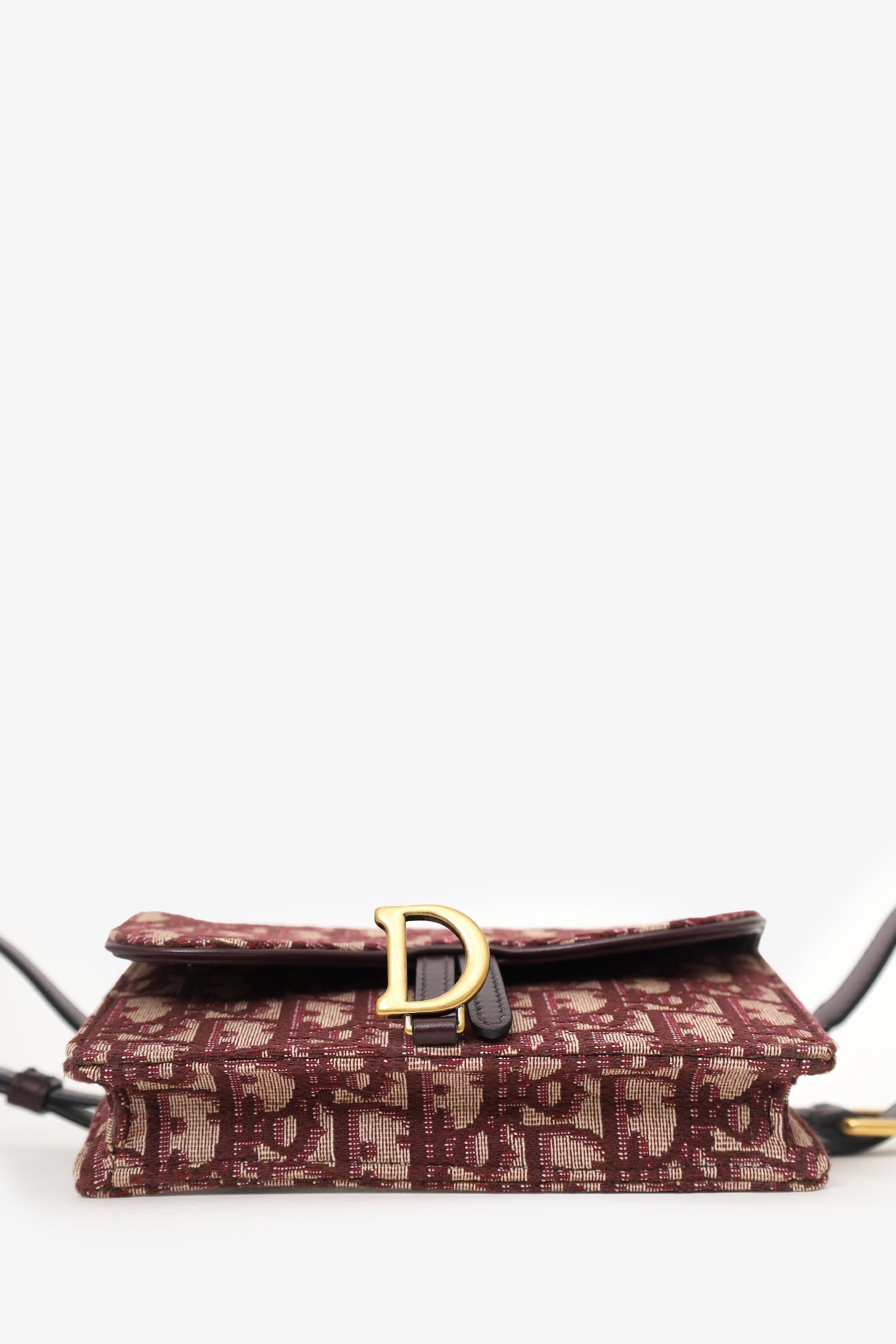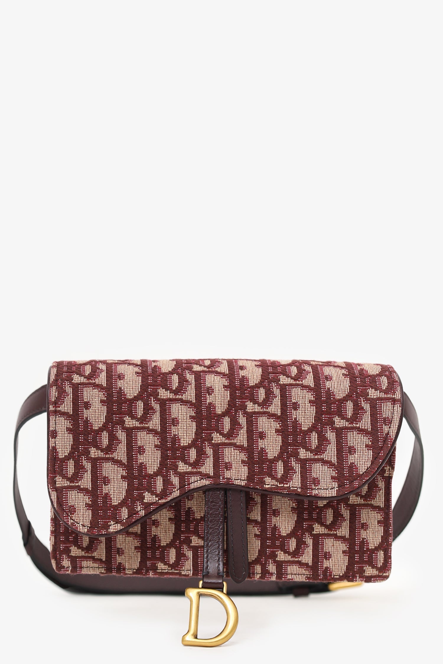 Christian Dior 2019 Burgundy Oblique Jacquard Saddle Belt Pouch