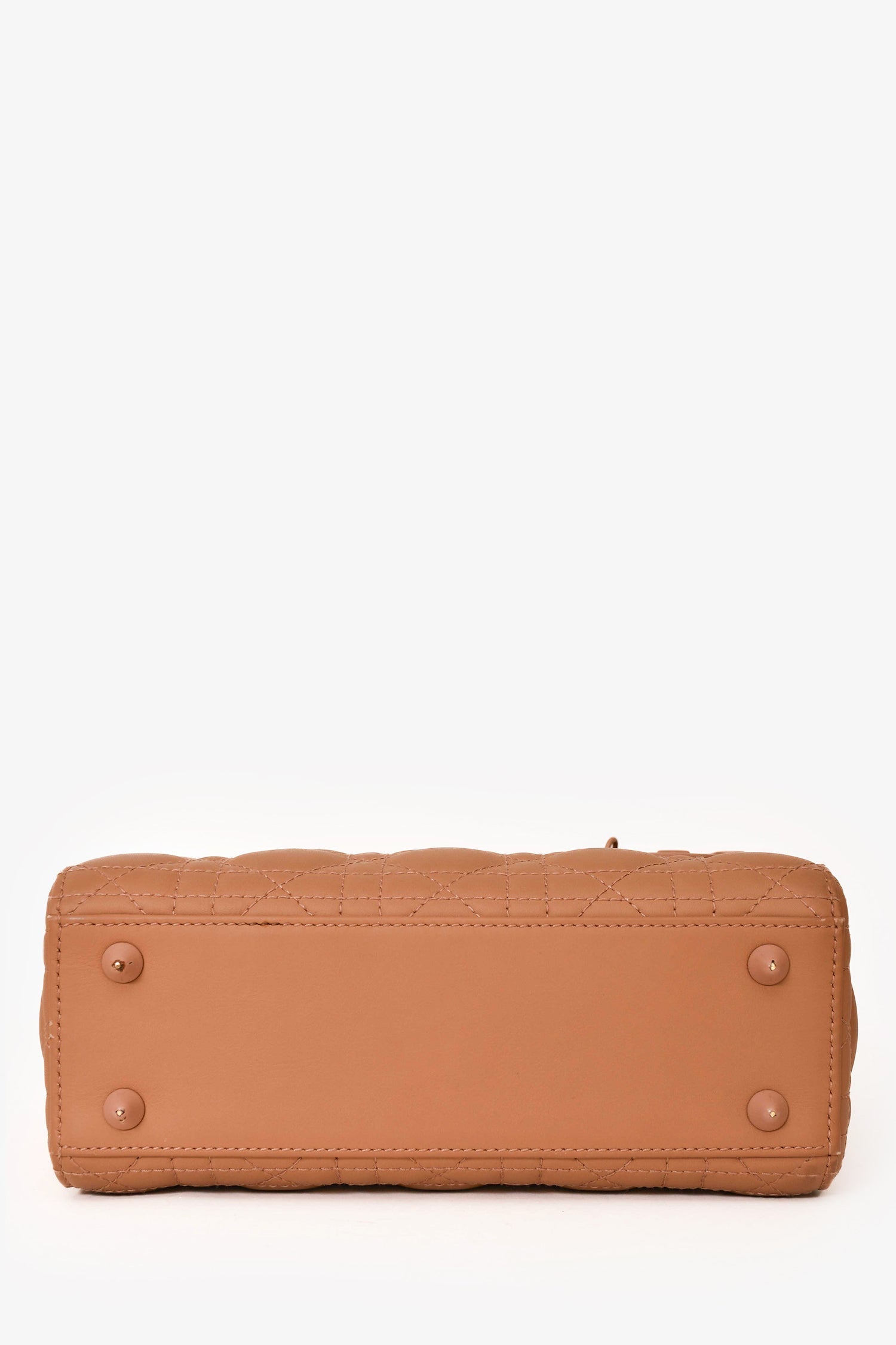 Christian Dior 2020 Brown Matte Cannage Leather Medium Lady Dior Top Handle. Removable crossbody strap with silver 'MH' monogram. Single interior slip pocket. Single interior zip pocket. Tonal suede interior lining. Tonal and silver-toned hardware. Tonal stitching.