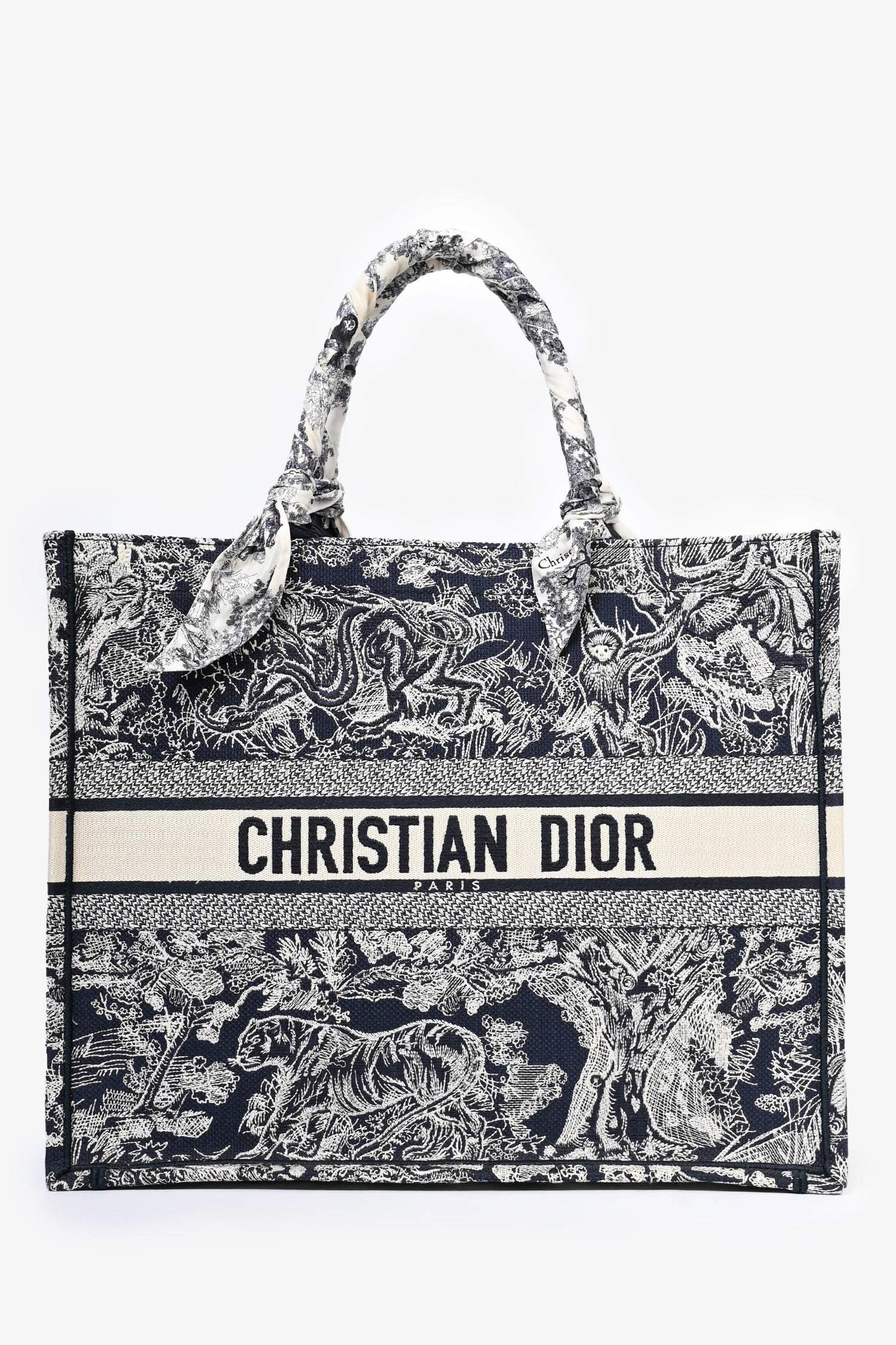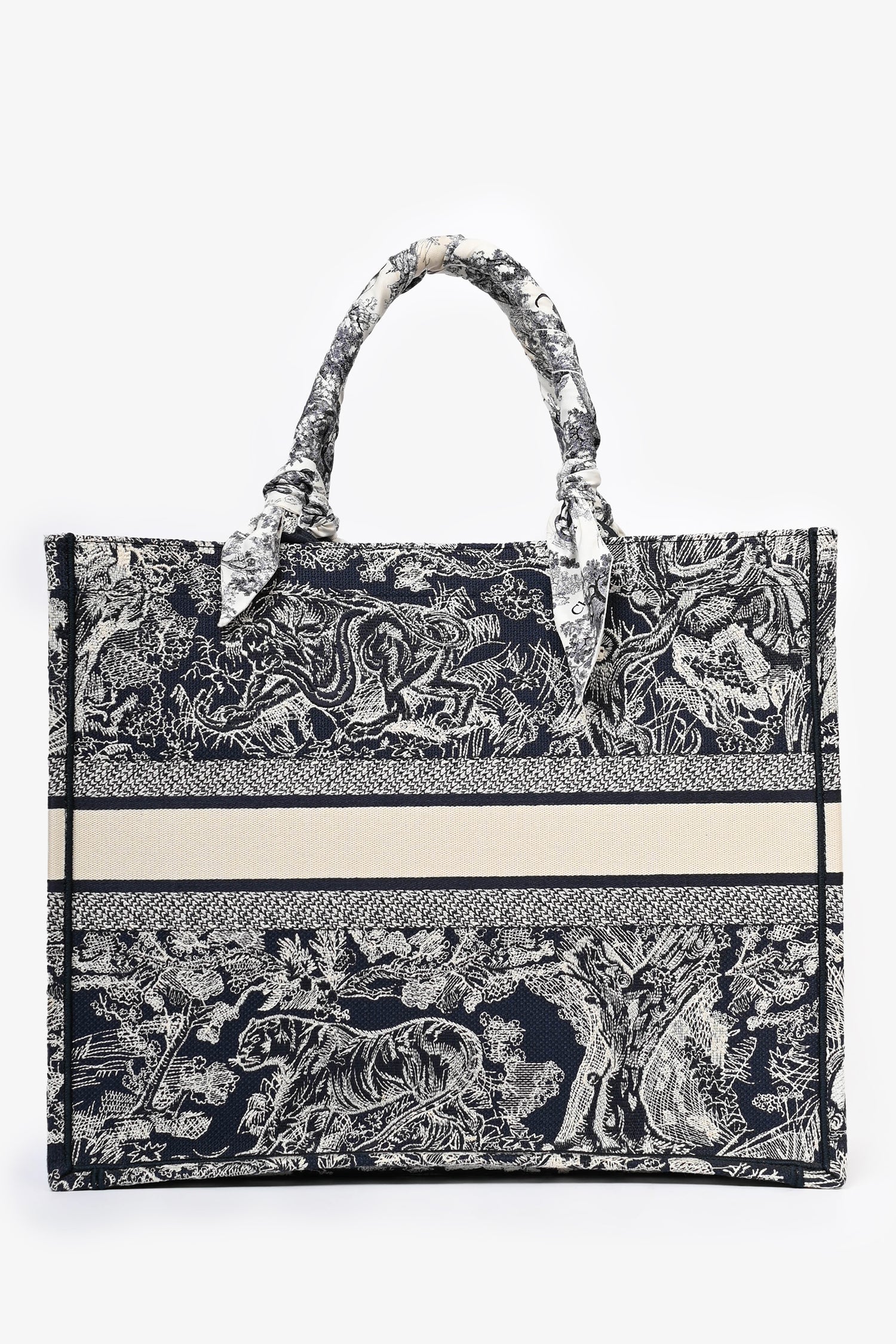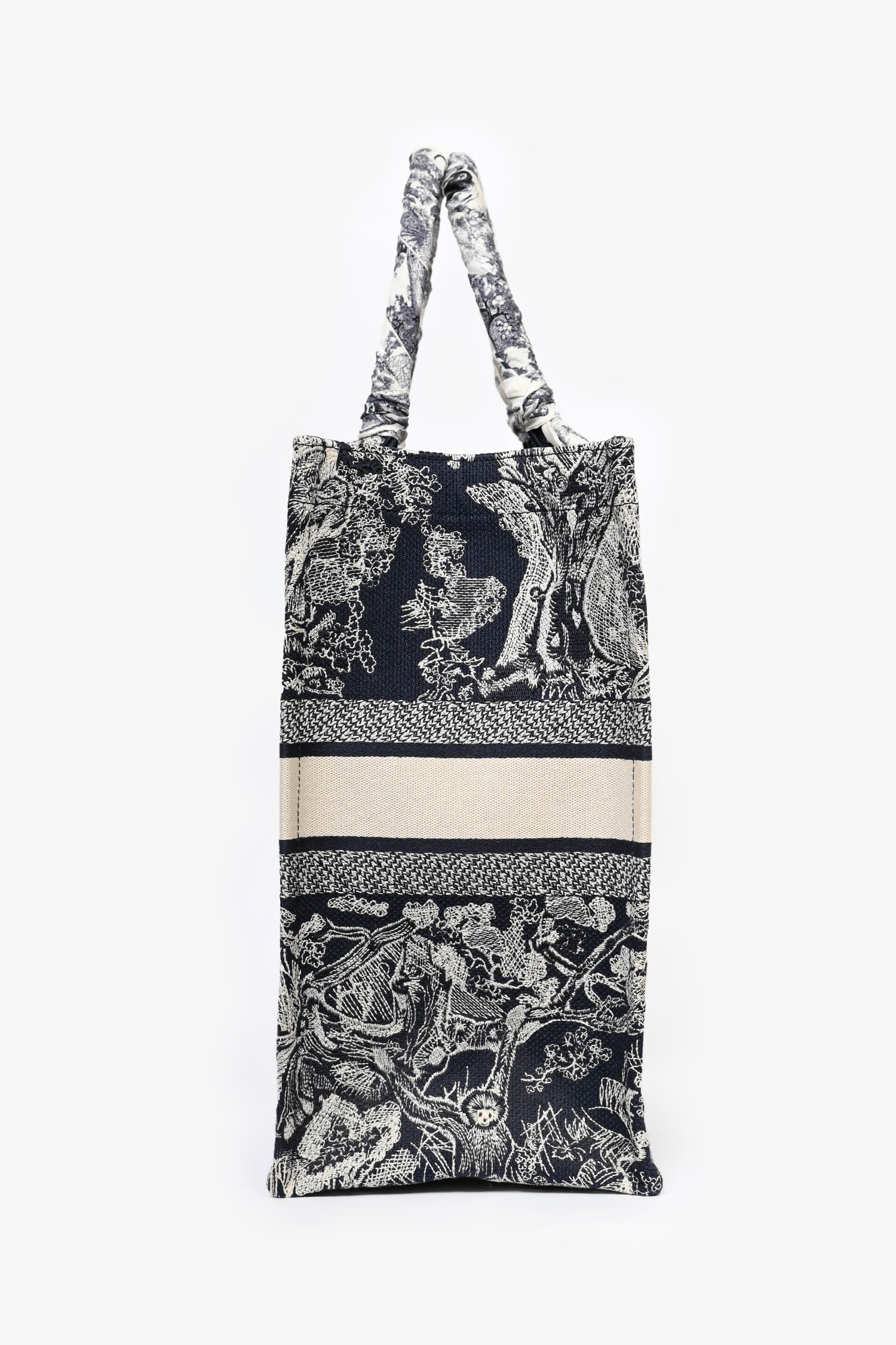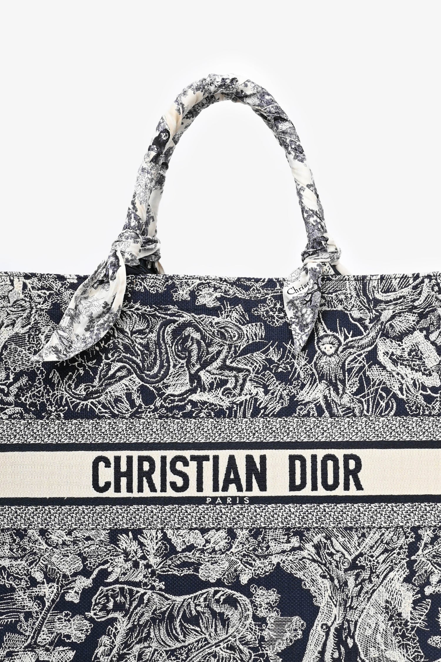 Christian Dior 2021 Navy Toile de Jouy Canvas Large Book Tote with Twillys
