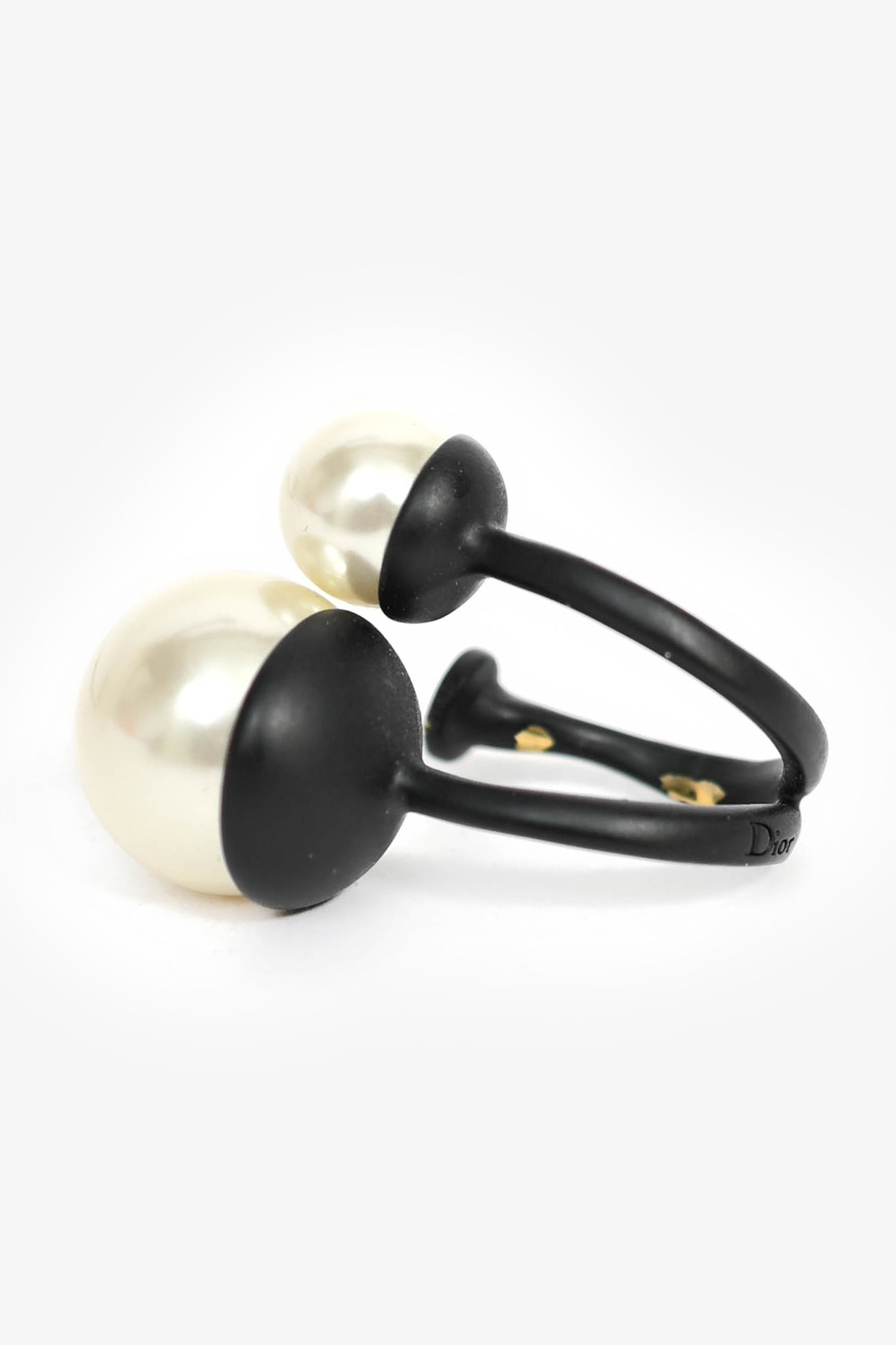 Christian Dior Black Faux Pearl Wrap Ring. Slip-on