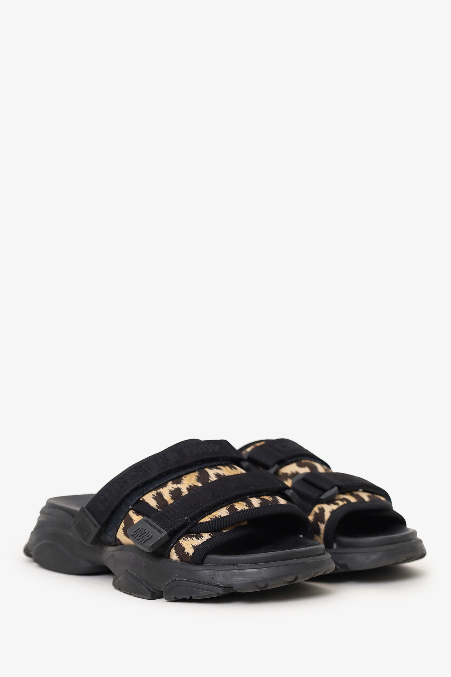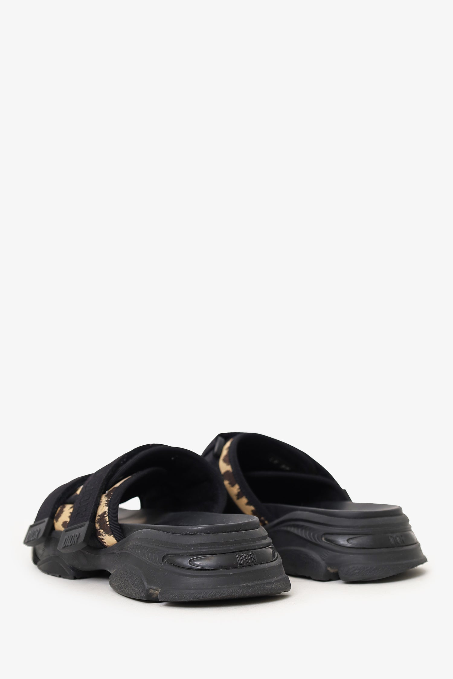 Christian Dior Black Leopard Print D-Wander Slides Size 37
