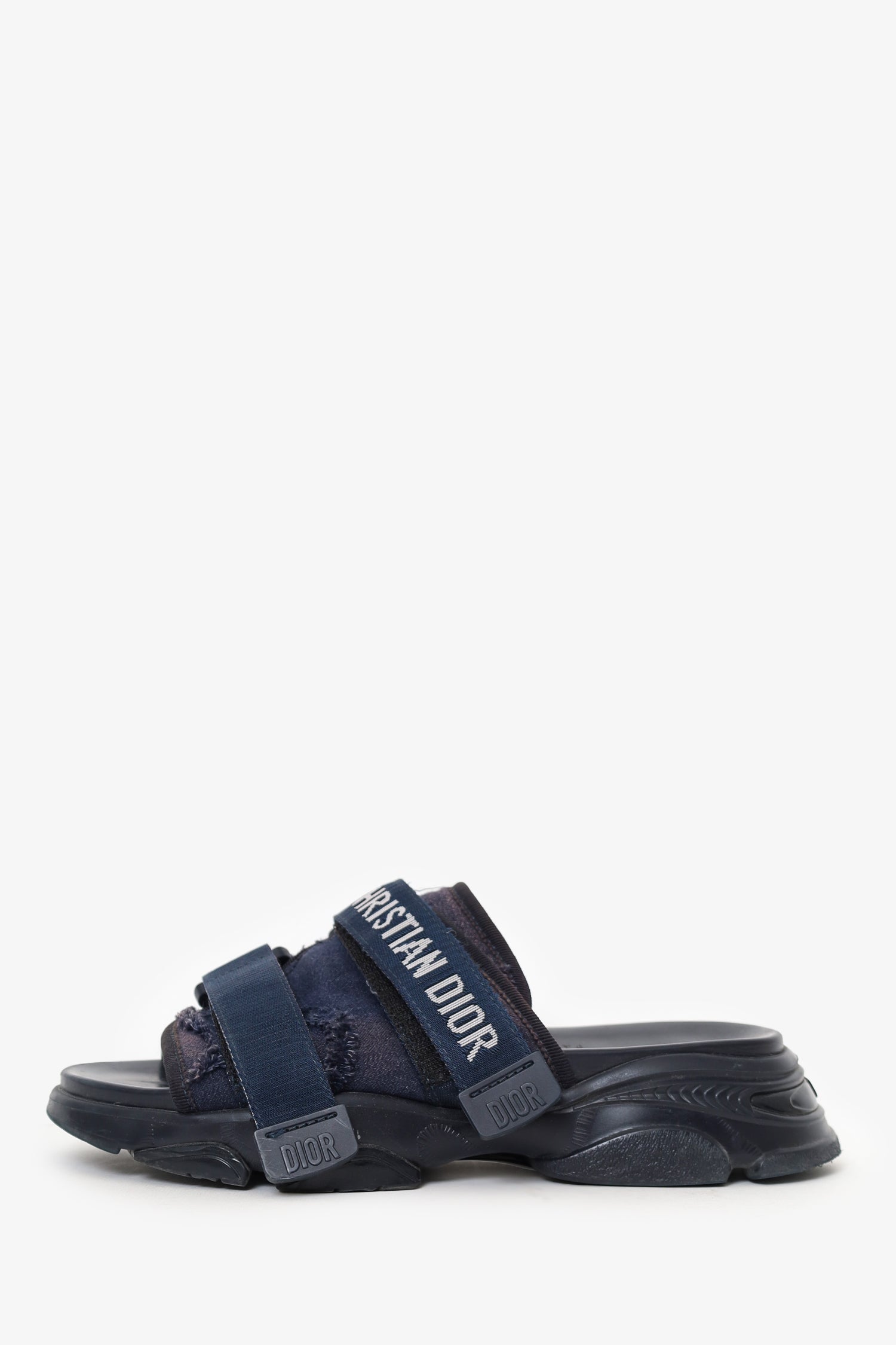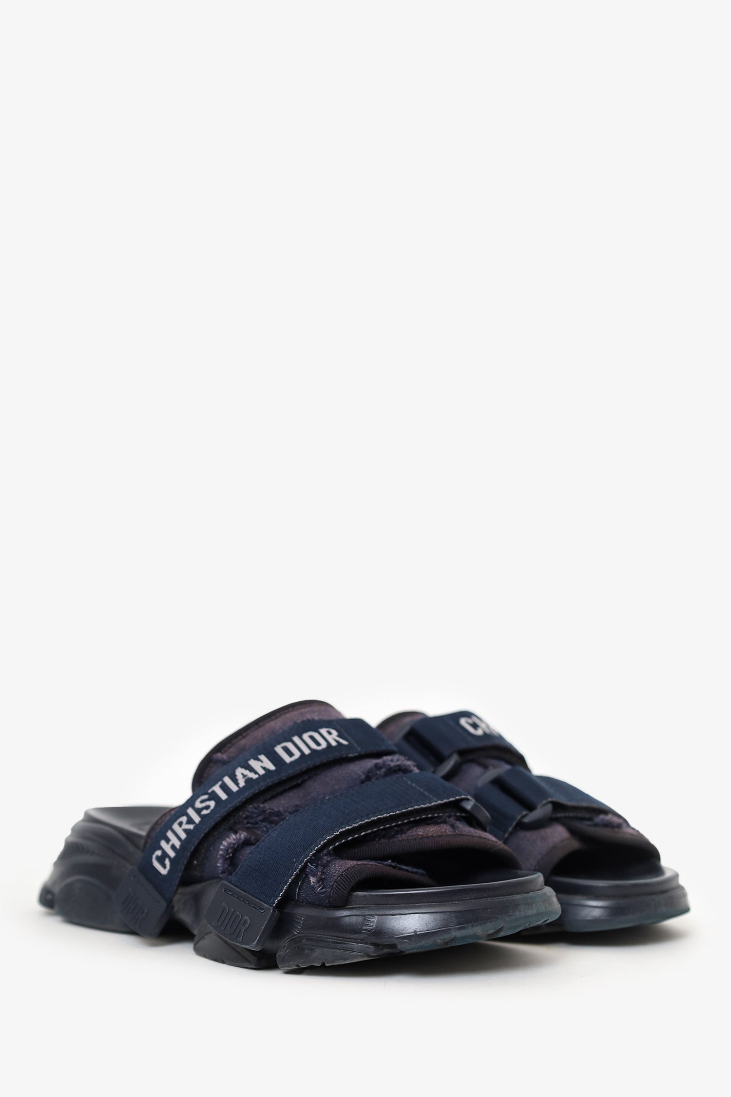 Christian Dior Navy J'Adior Velcro Slides Size 36