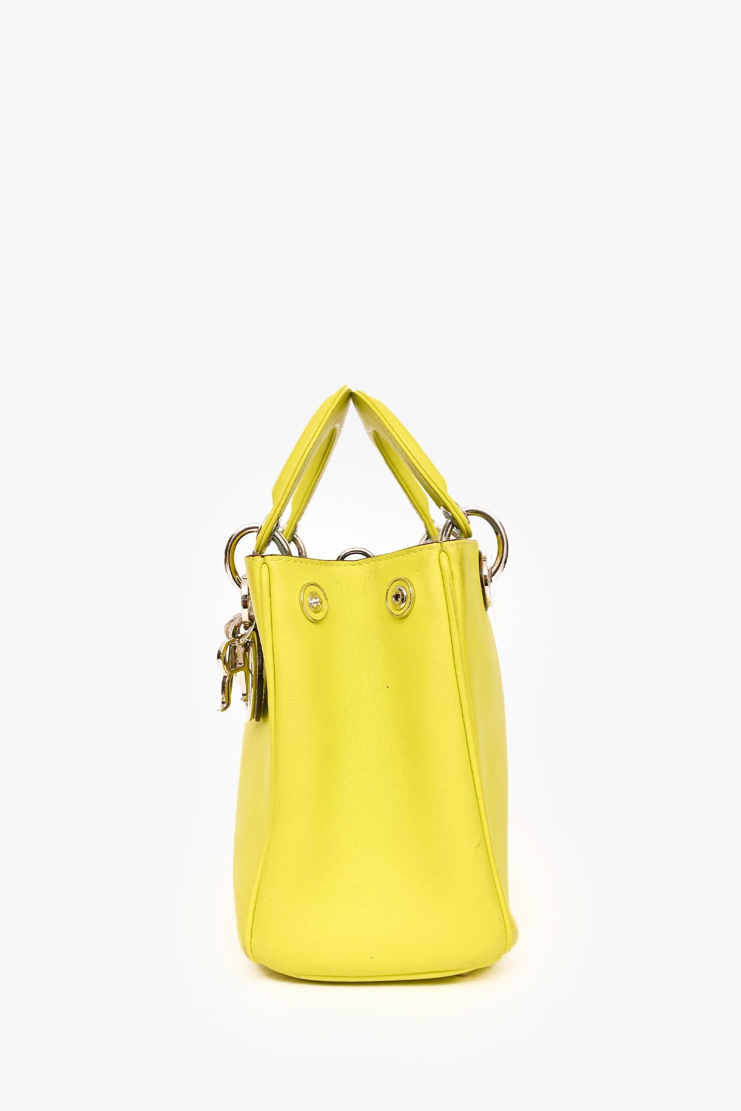 Christian Dior Neon Green Leather Small Diorissimo Top Handle with Strap