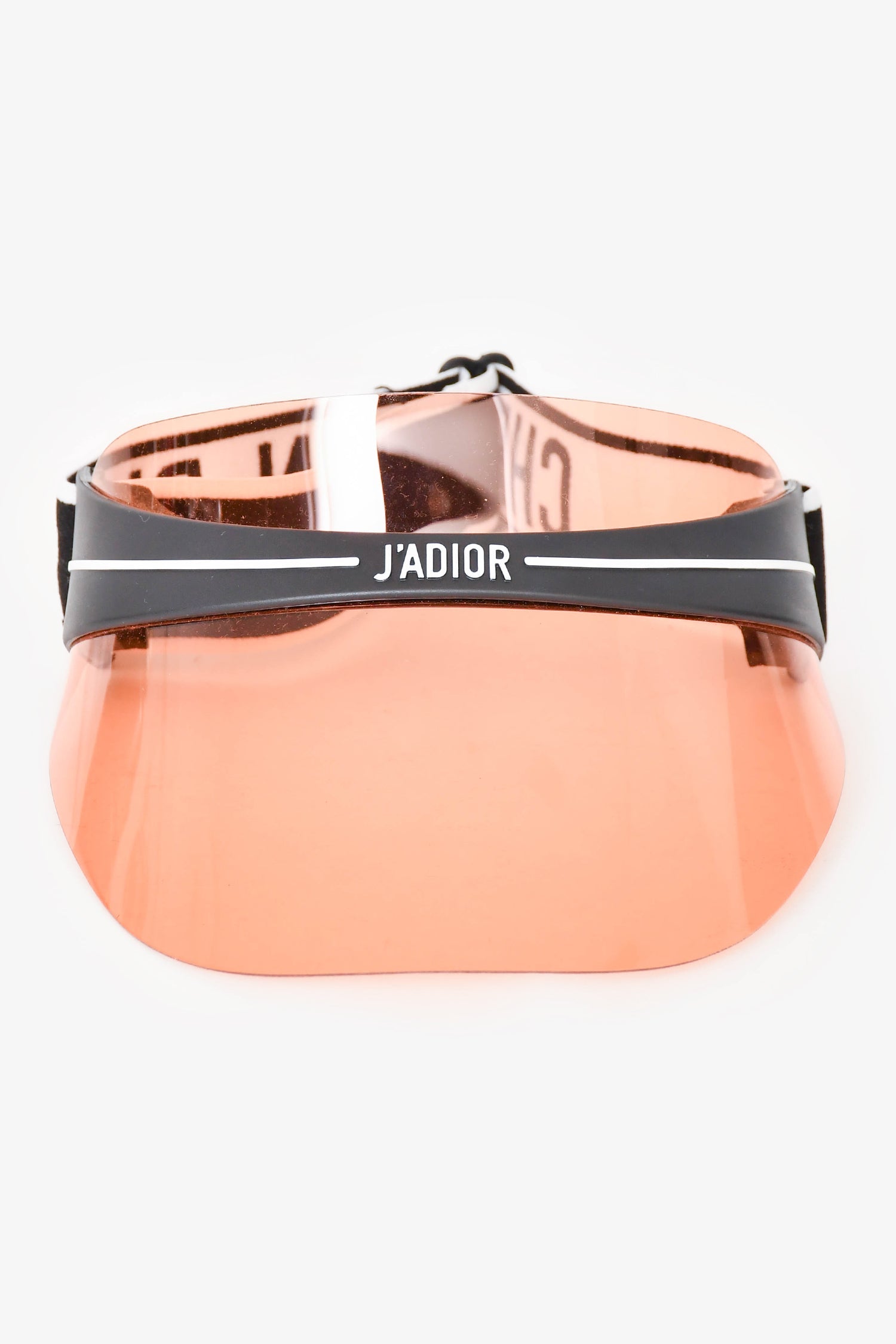 Christian Dior Orange/Black Dior Club1 Visor. Adjustble back. Foam lined interior. Tonal hardware. Tonal stitching.