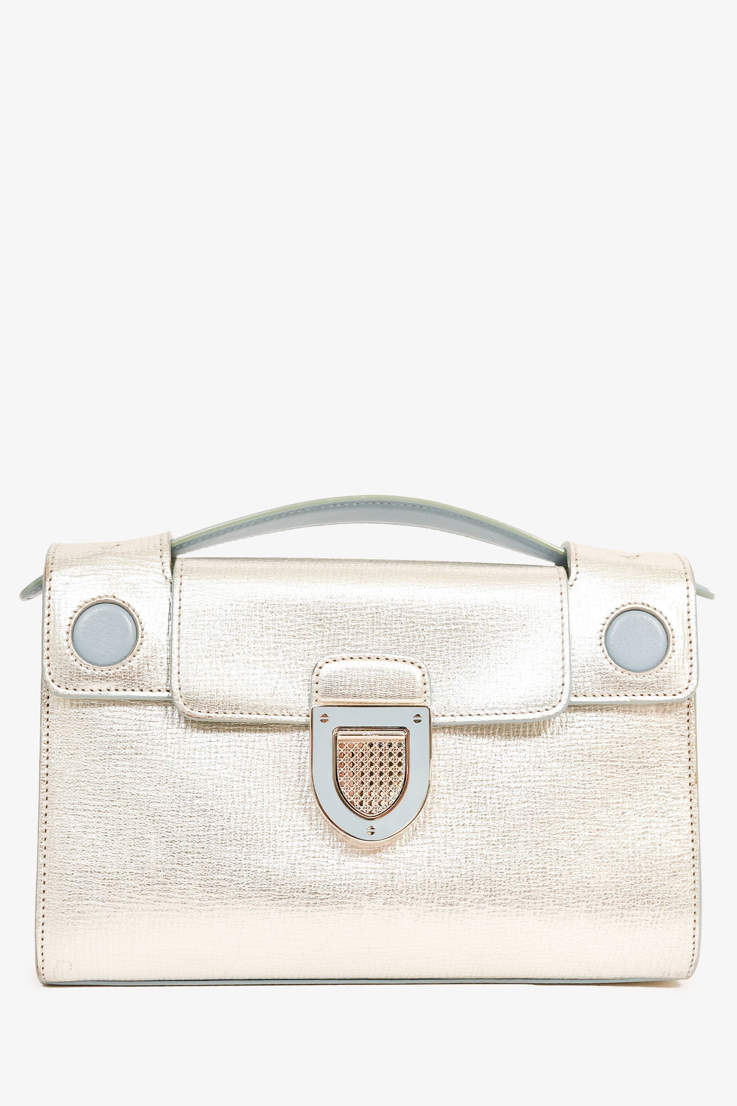 Christian Dior Silver/Light Blue Leather 'Diorever' Pochette Top Handle with Strap