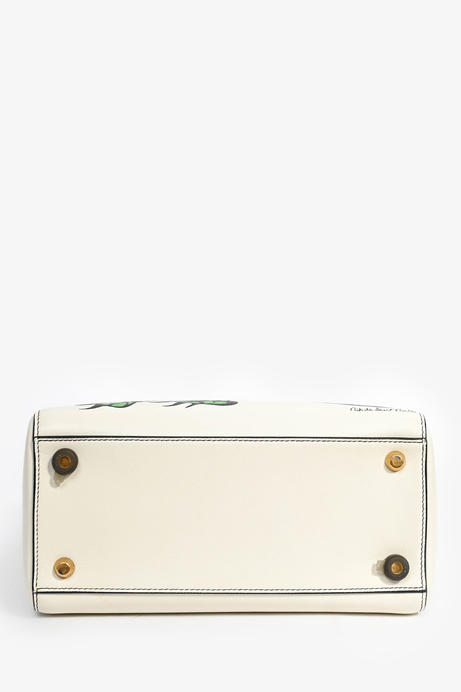 Christian Dior x Nika De Saint Phalle 2018 White Leather Medium Dragon 'Lady Dior' Top Handle Bag with Strap. Dual handles. Top flap closure. Detachable crossbody strap. Attached bag charm. 2 interior pockets, 1 slip and 1 zip. Suede lining. Tonal stitching. Gold-tone hardware.