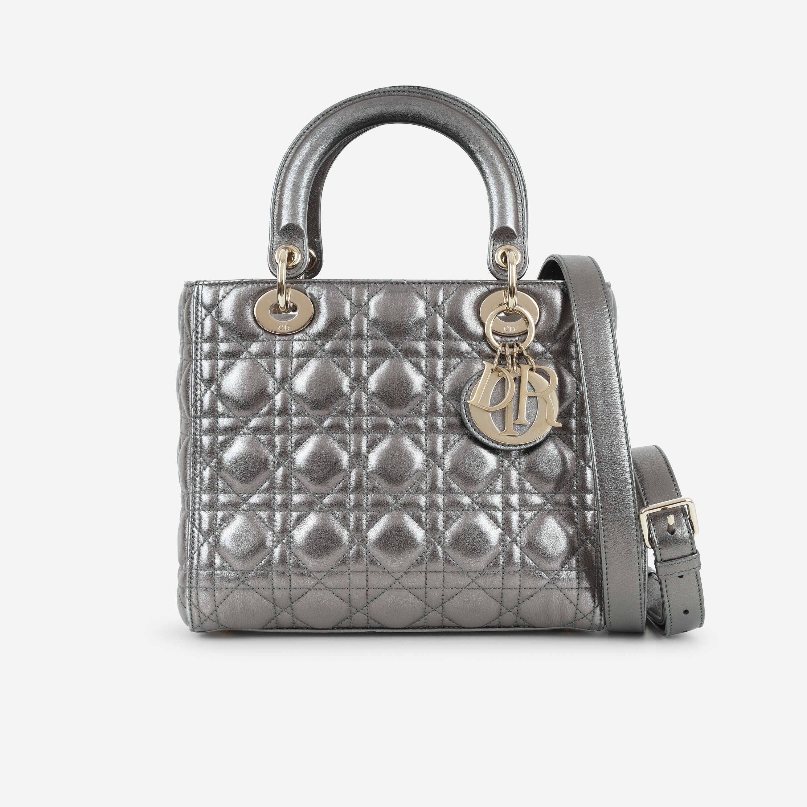 The Medium Lady Dior bag is a true symbol of Dior’s heritage and elegance. Crafted with precision, it features the signature Cannage-stitched leather, Dior's iconic "D.I.O.R." charms, and a structured silhouette that embodies sophistication and modern femininity.