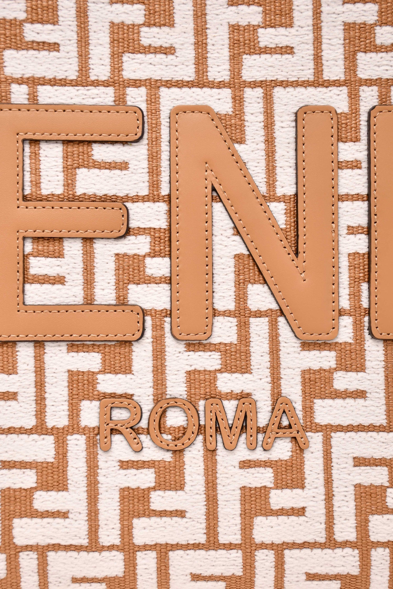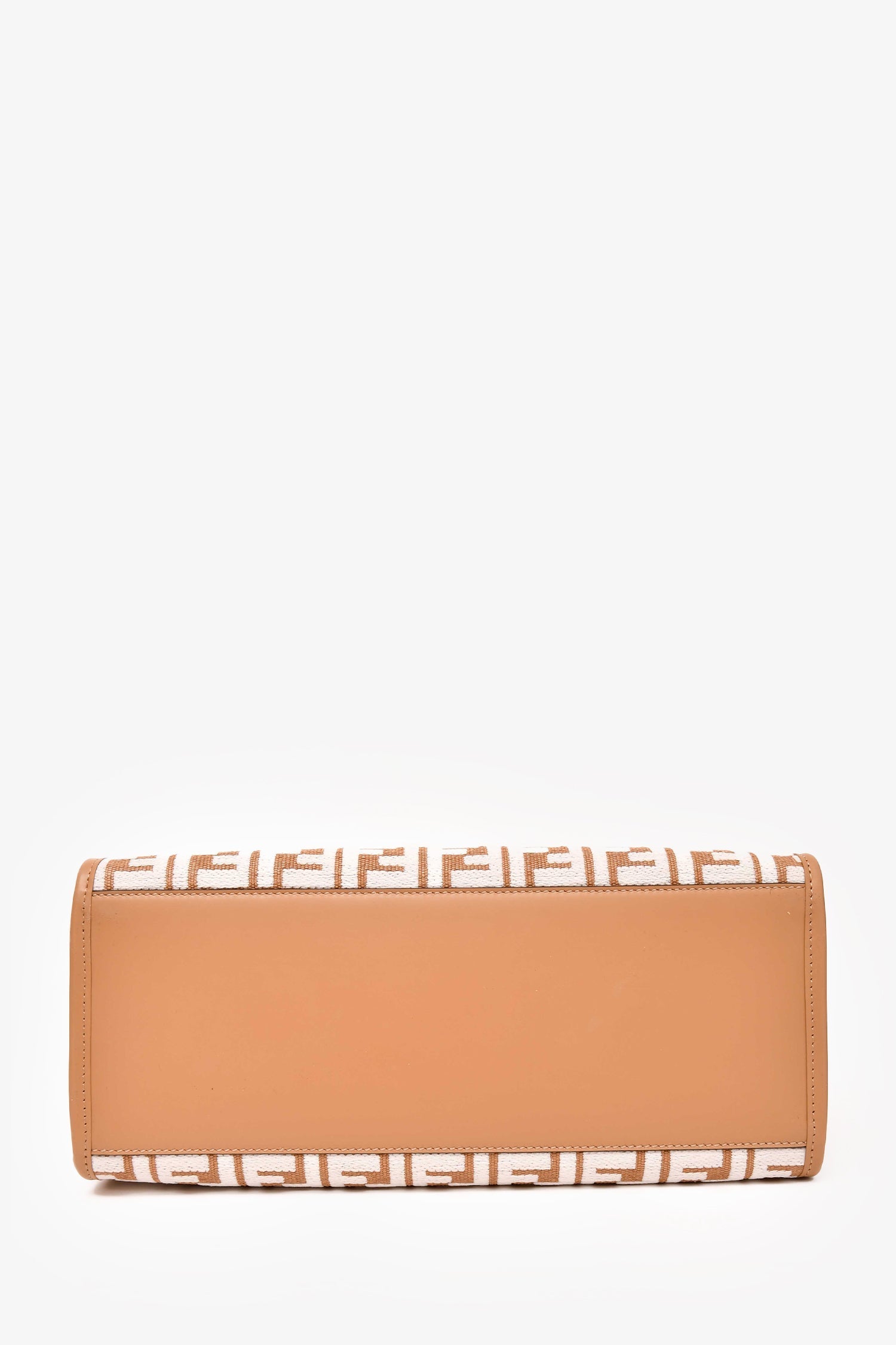Fendi Brown/ White Leather/Canvas FF Zucca Sunshine Shopping Tote With Strap