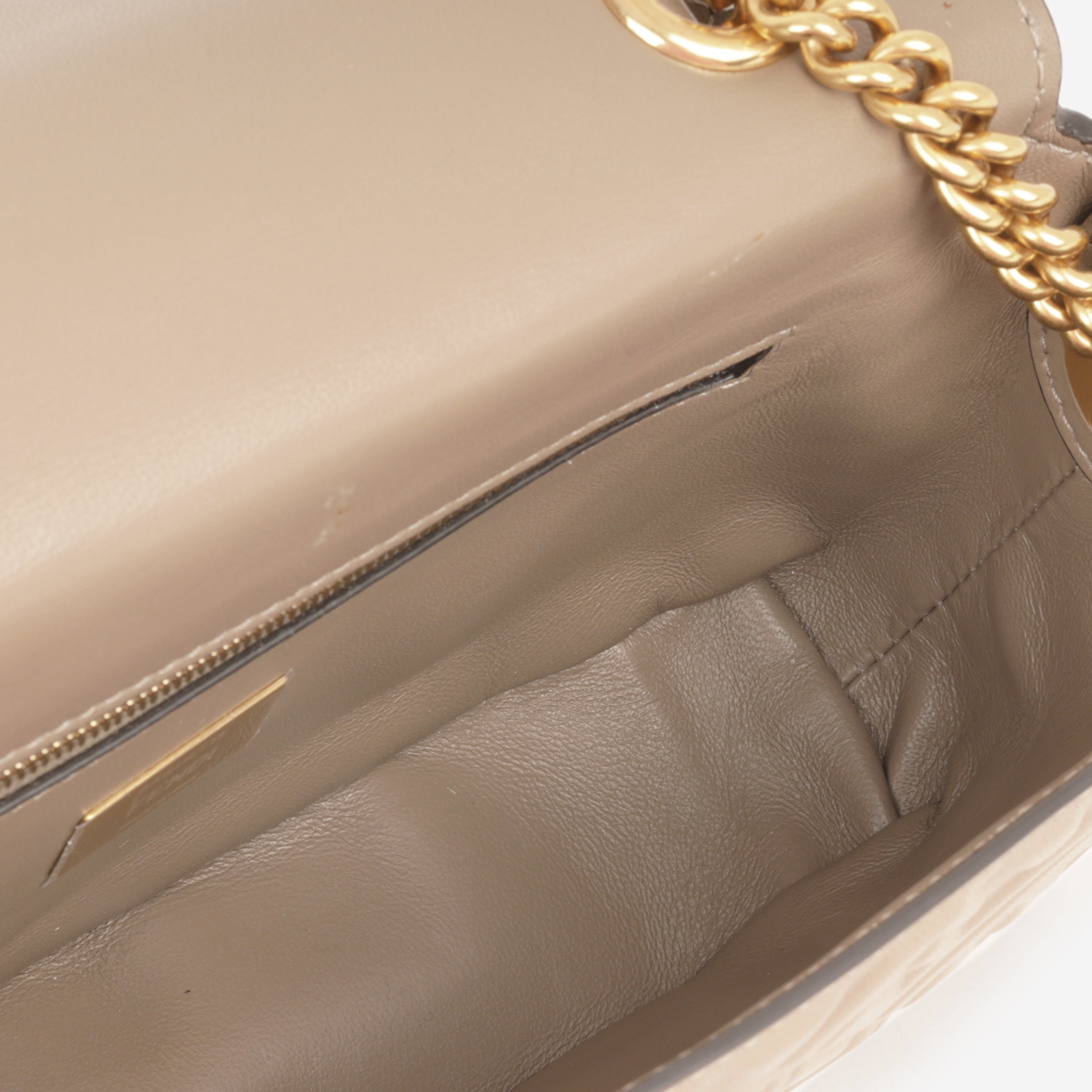 Fendi Midi Chain Baguette - Taupe Calfskin | Gold Hardware