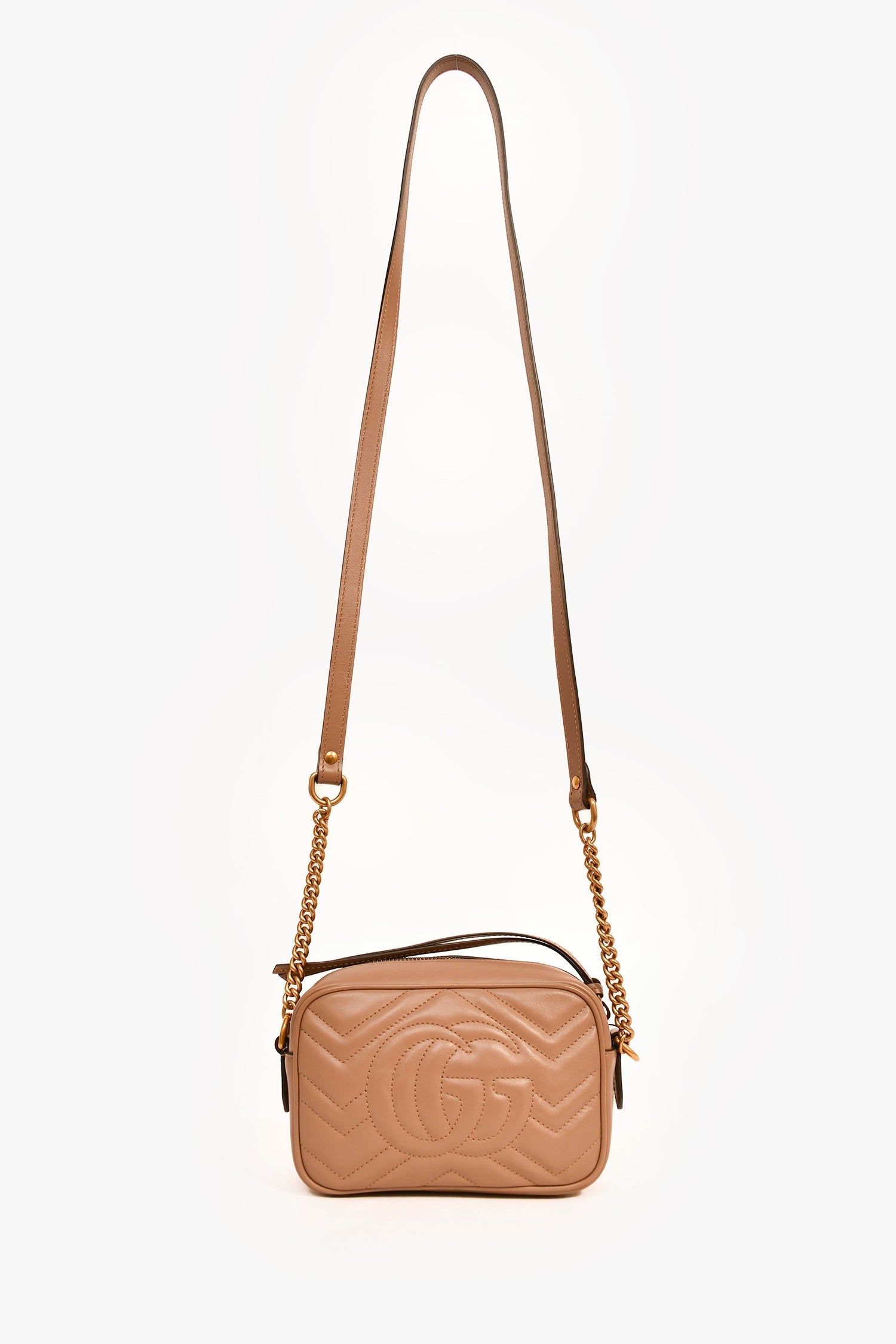 Gucci Beige GG Quilted Chevron Leather Marmont Mini Camera Bag