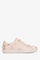 Gucci Beige Leather Pink Metallic Strawberry Printed Sneakers. Round toe. Lace-up closure.
