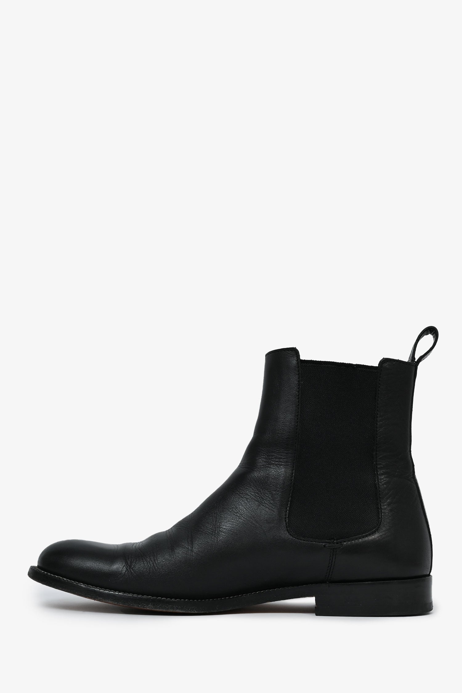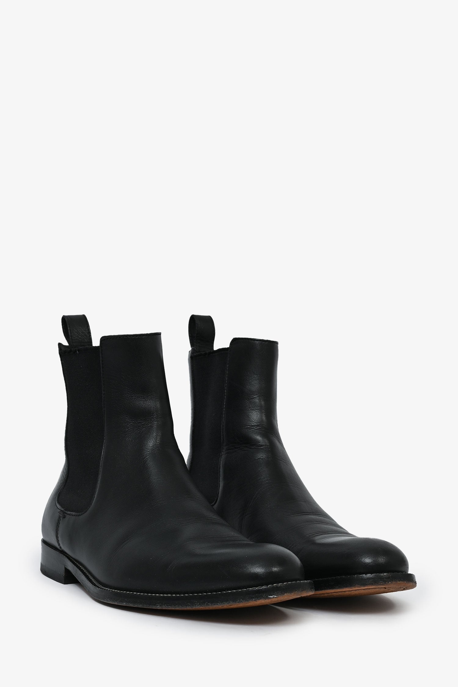 Gucci Black Leather Chelsea Boots. Almond toe. Slip-on. Tonal stitching