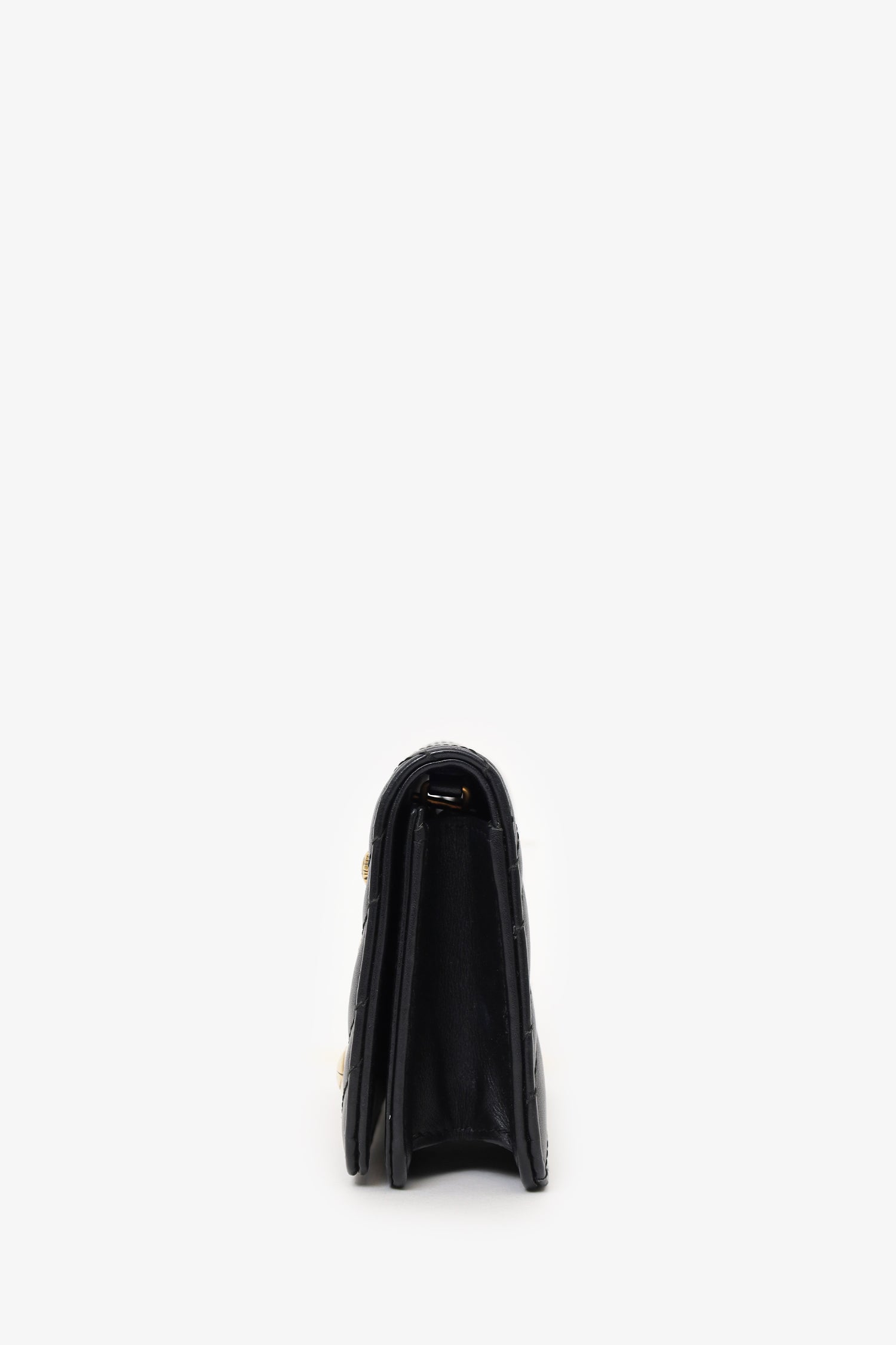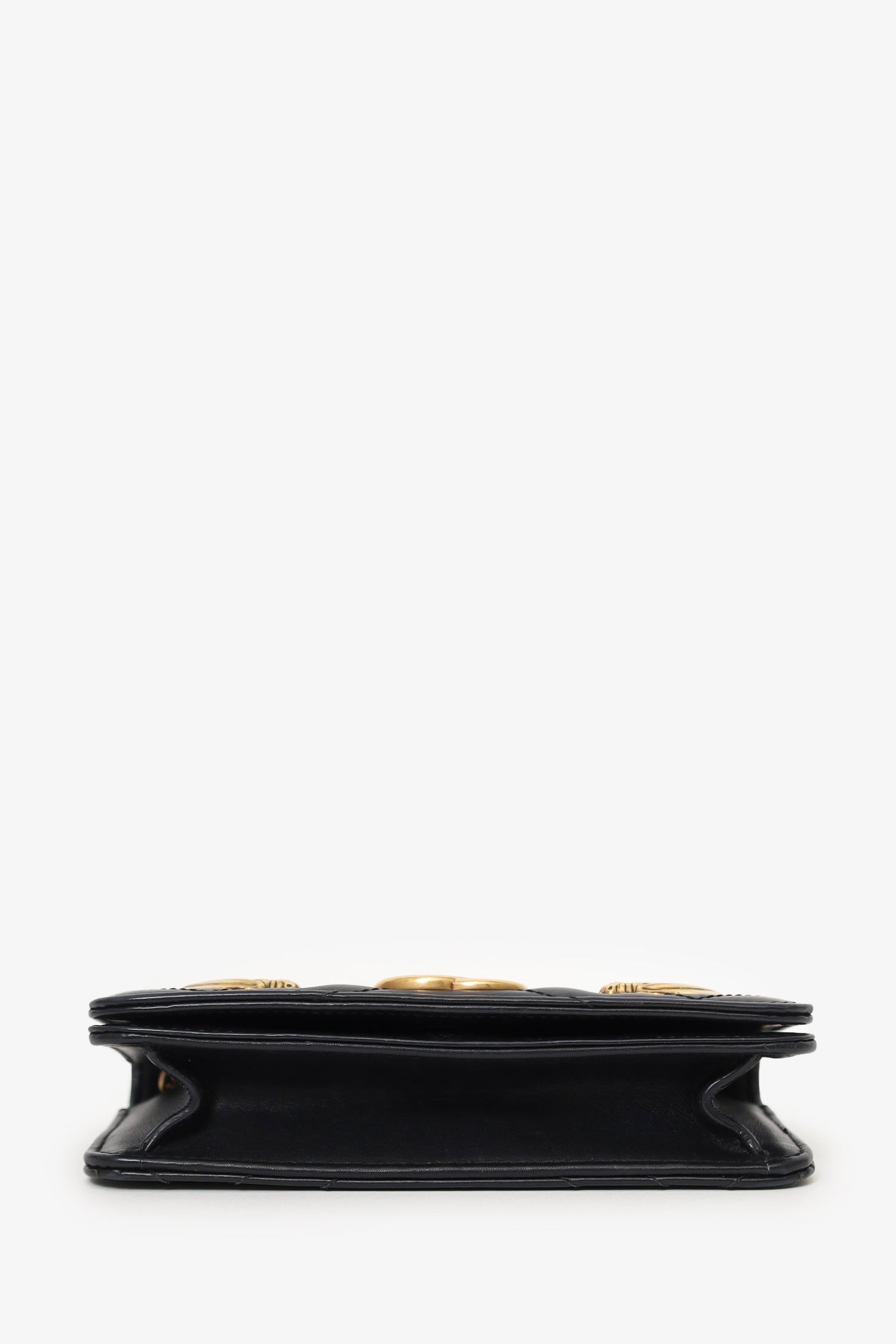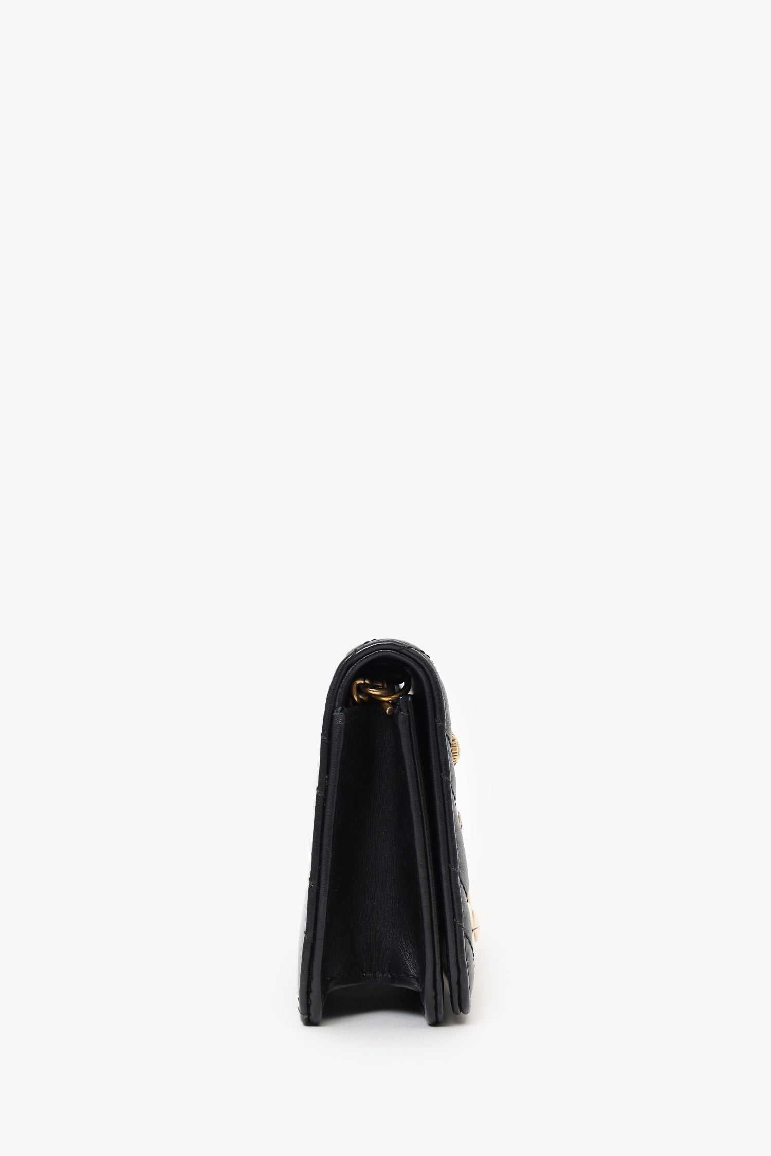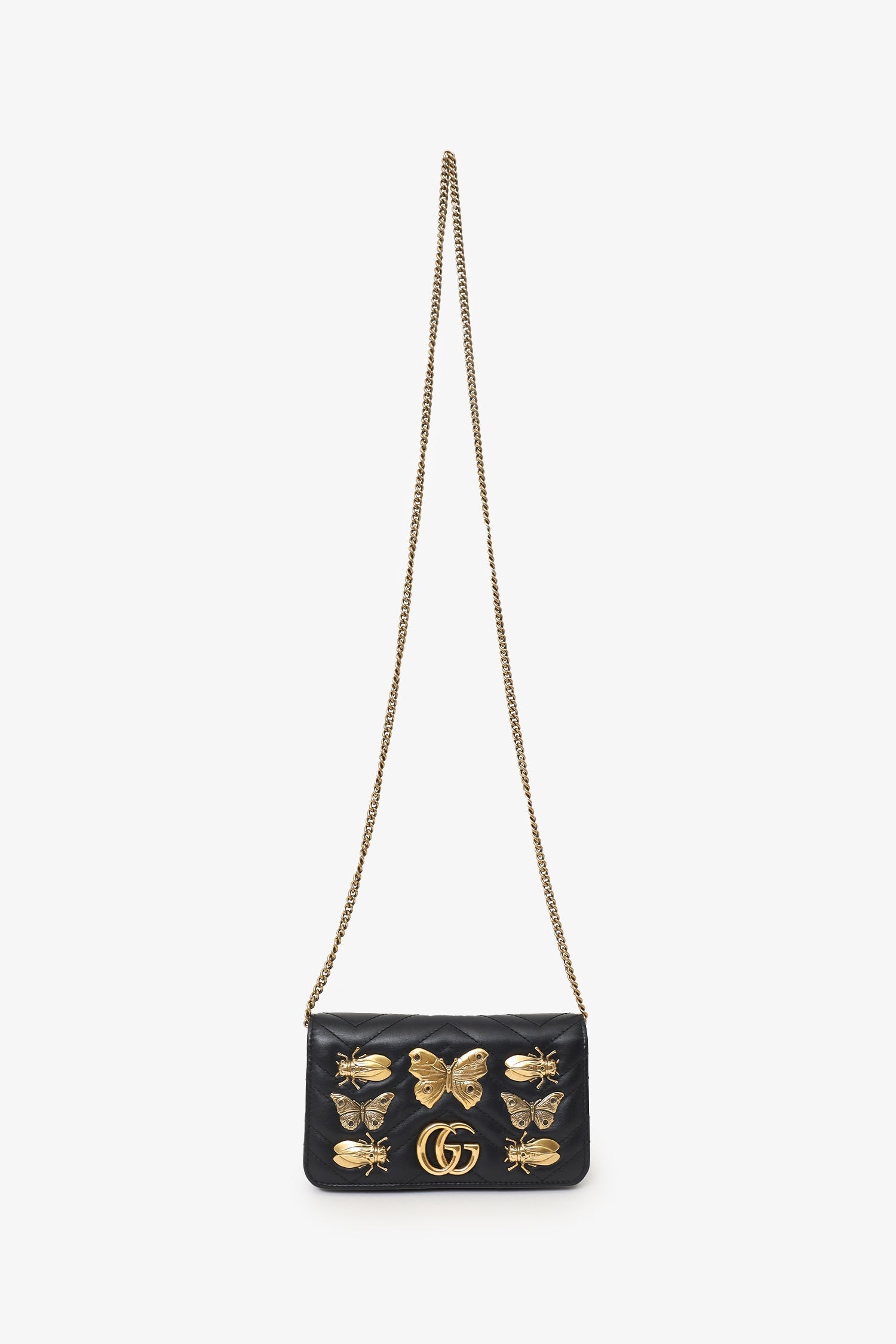 Gucci Black Leather Mini GG Marmont Animal Studs Wallet on Chain