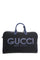 Gucci Black/Navy Canvas/Leather 'Gucci' Printed Duffle Bag With Strap