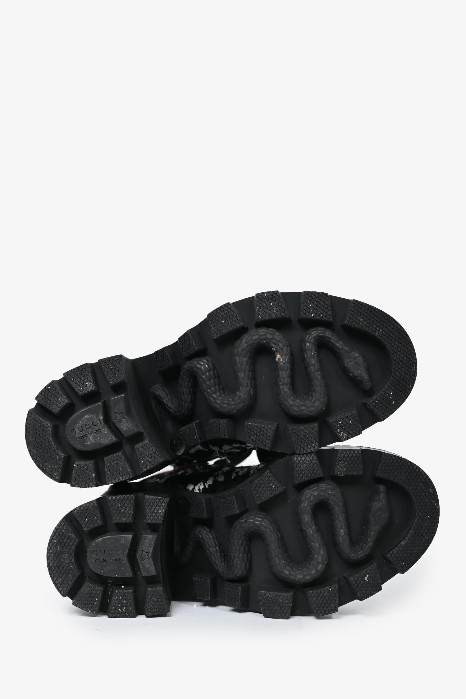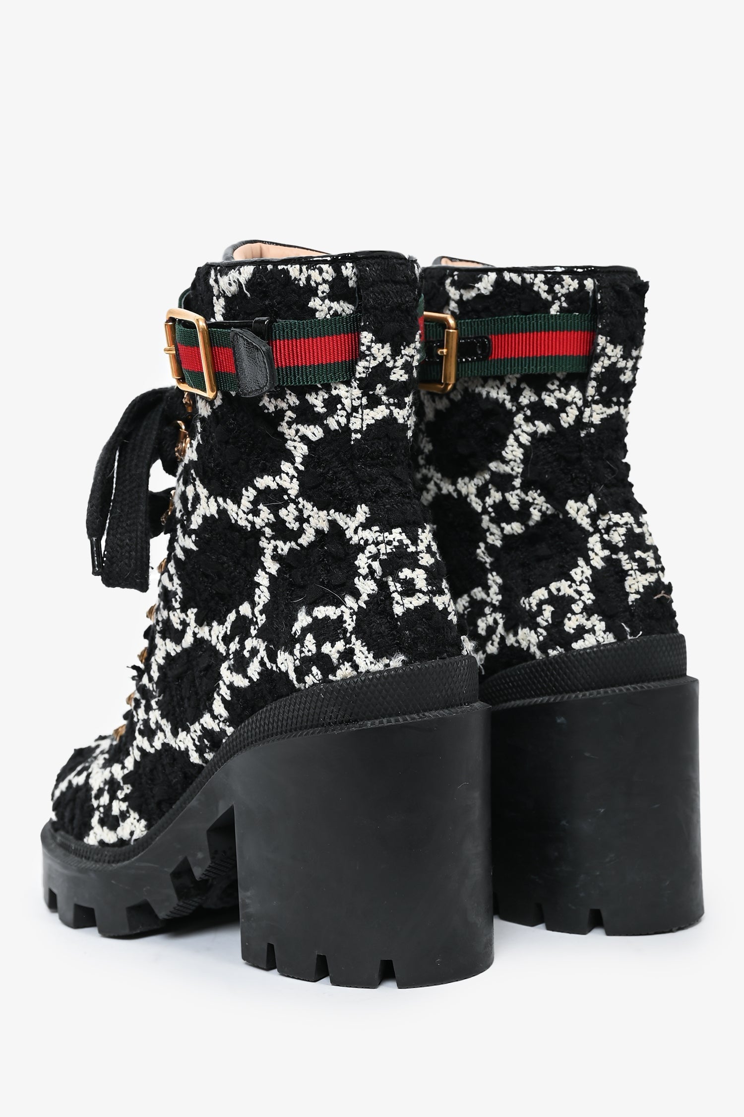 Gucci Black/White Tweed Heeled Combat Boots Size 35.5