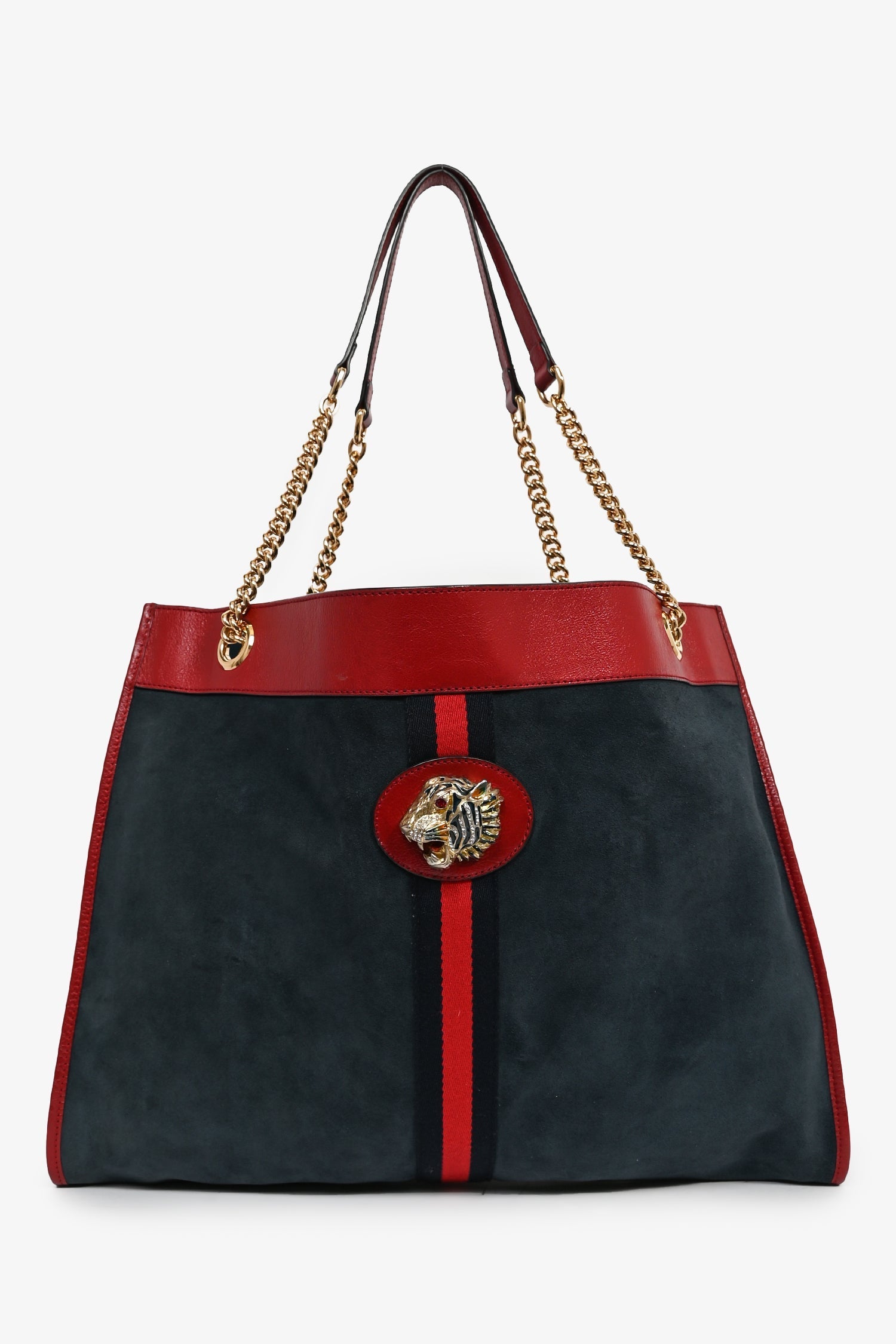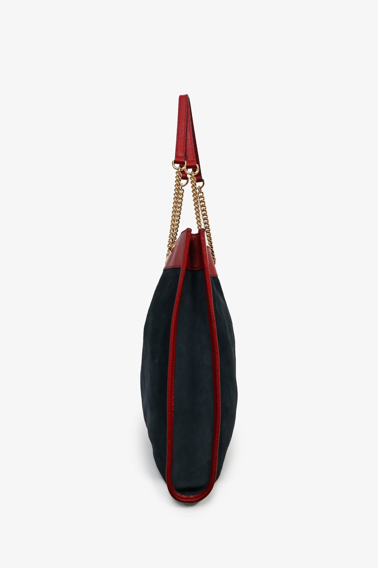 Gucci Blue Suede Red Leather Trimmed 'Rajah' Tote Bag