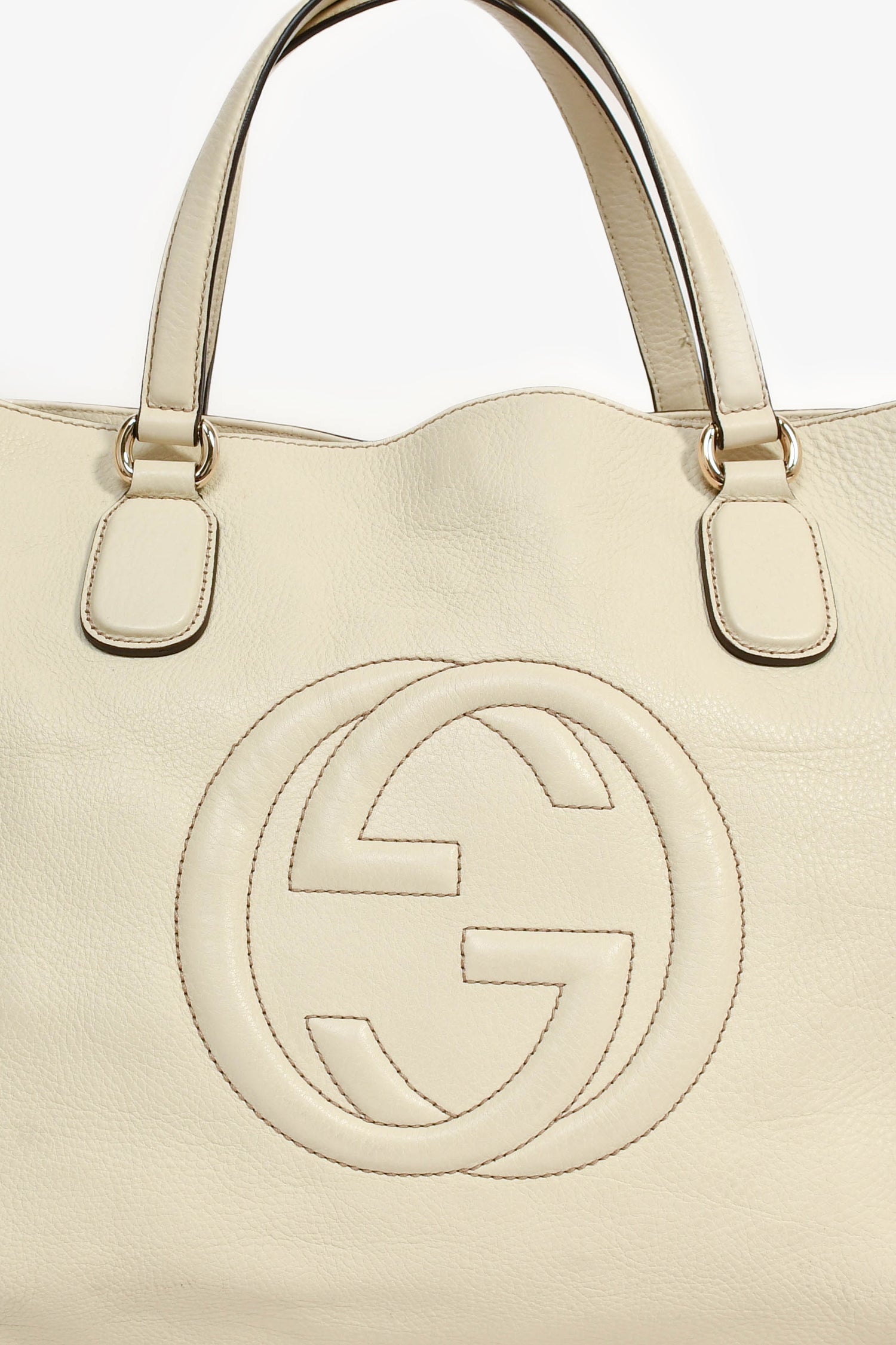 Gucci Cream Grained Leather Soho Large Tote Bag