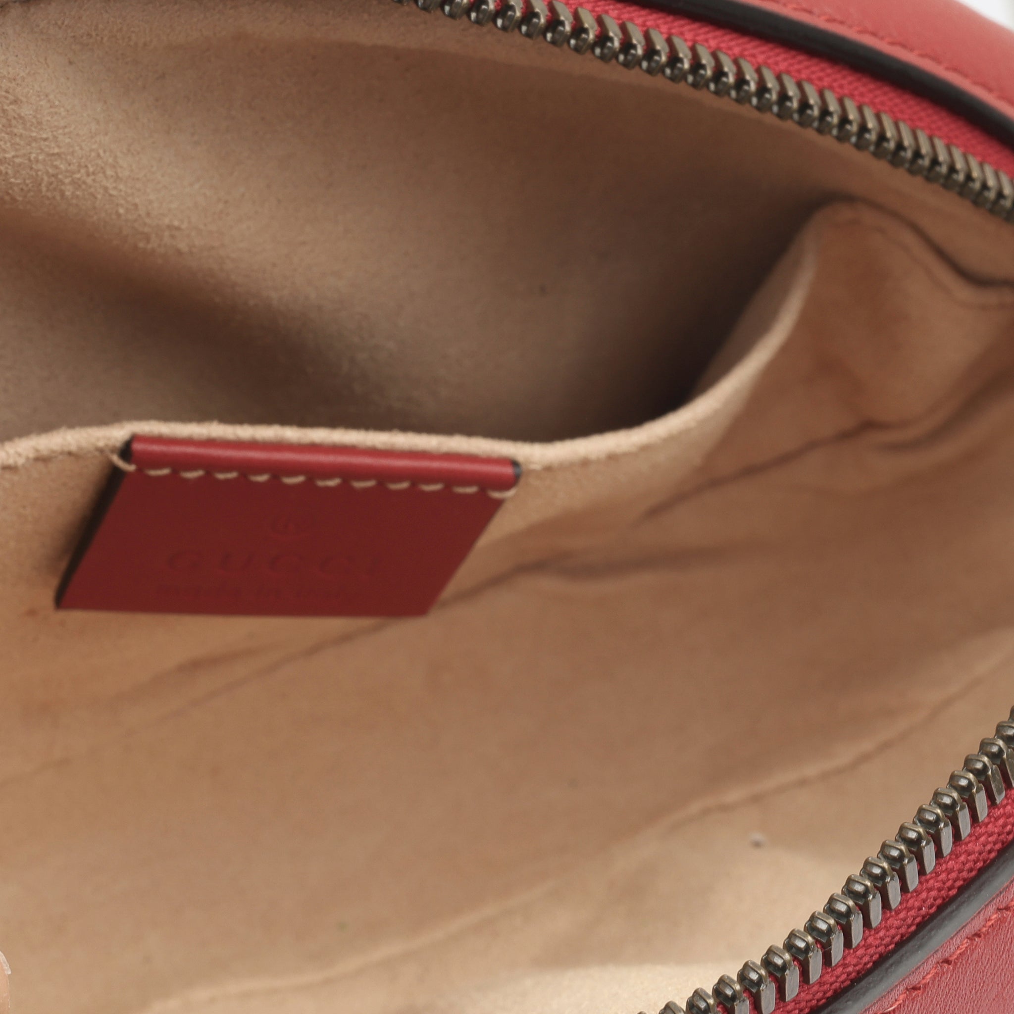 Compliment your wardrobe with a hit of velvet this year. Featuring a rounded shape and sporty appearance, this Gucci Marmont belt bag is crafted from red calfskin and complemented with antiqued gold hardware. Wear as a belt bag, hip bag or even across your chest.