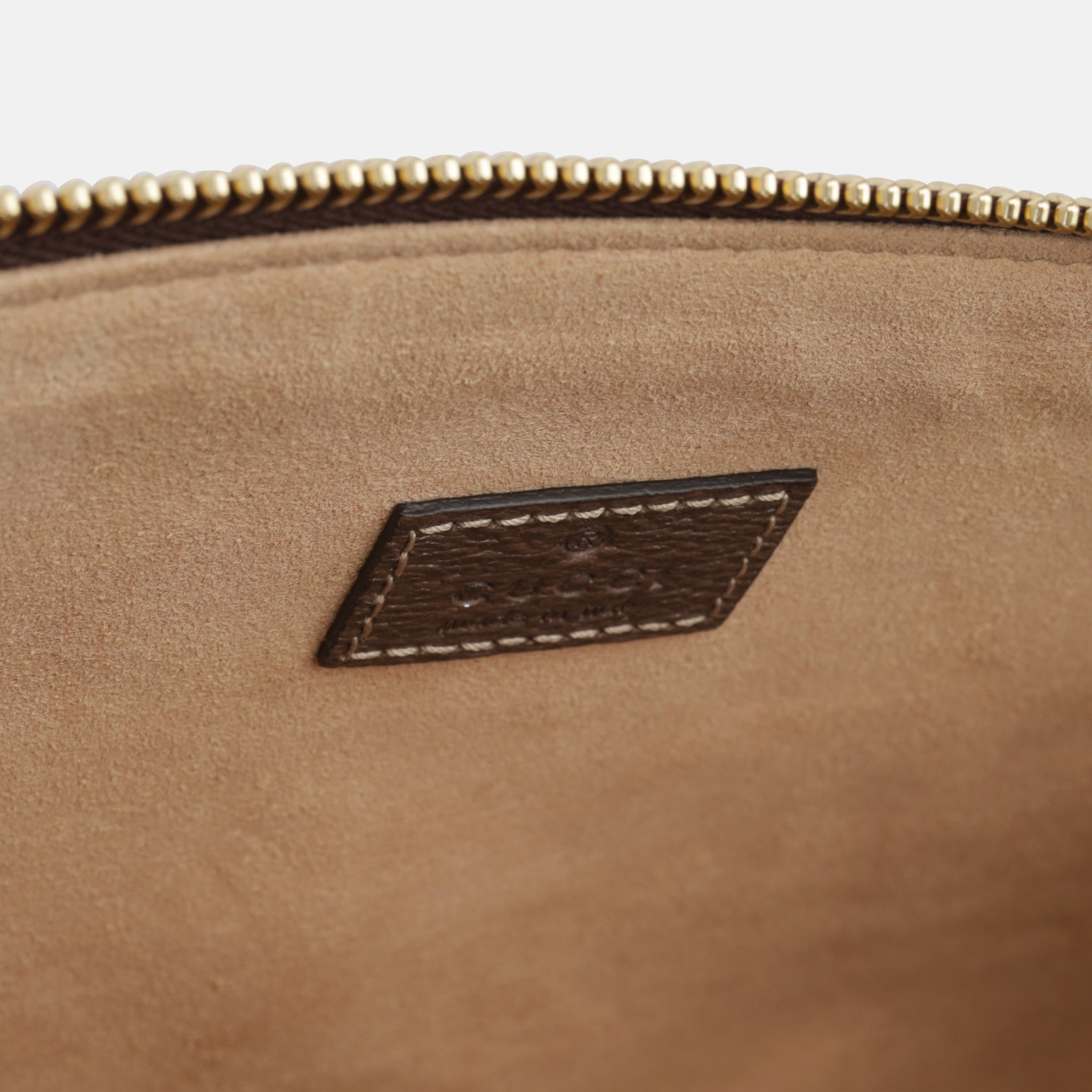 Crafted from the brand's signature GG Supreme monogram canvas, Gucci presents their Ophidia pouch. Accented with gold-tone hardware, brown leather trimming and Gucci's classic red and green fabric strip down the front, the Ophidia is an absolute must-have for any woman with a love for luxury and a soft spot for timepieces.