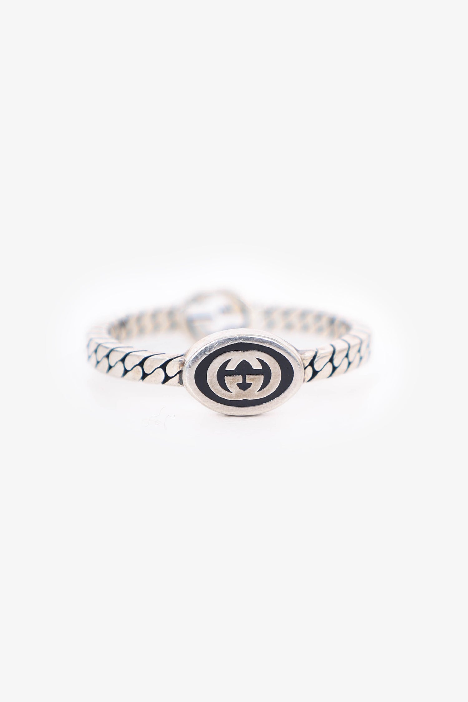 Gucci Sterling Silver Thin Interlocking G Ring. Silver-tone hardware.