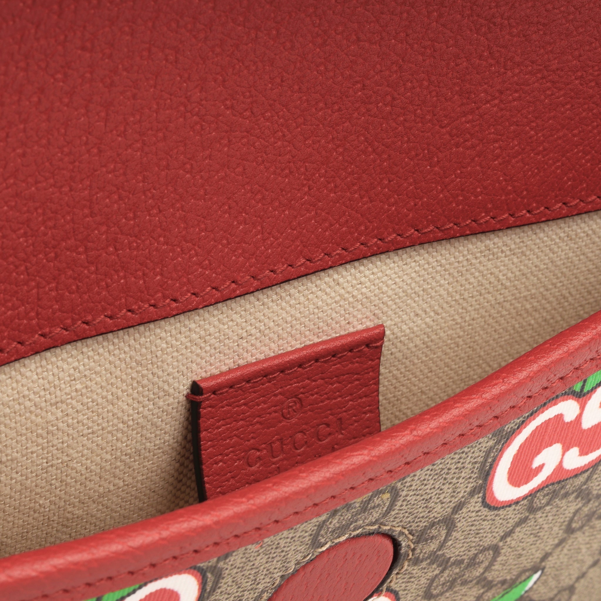 - Gucci embossed leather logo tag