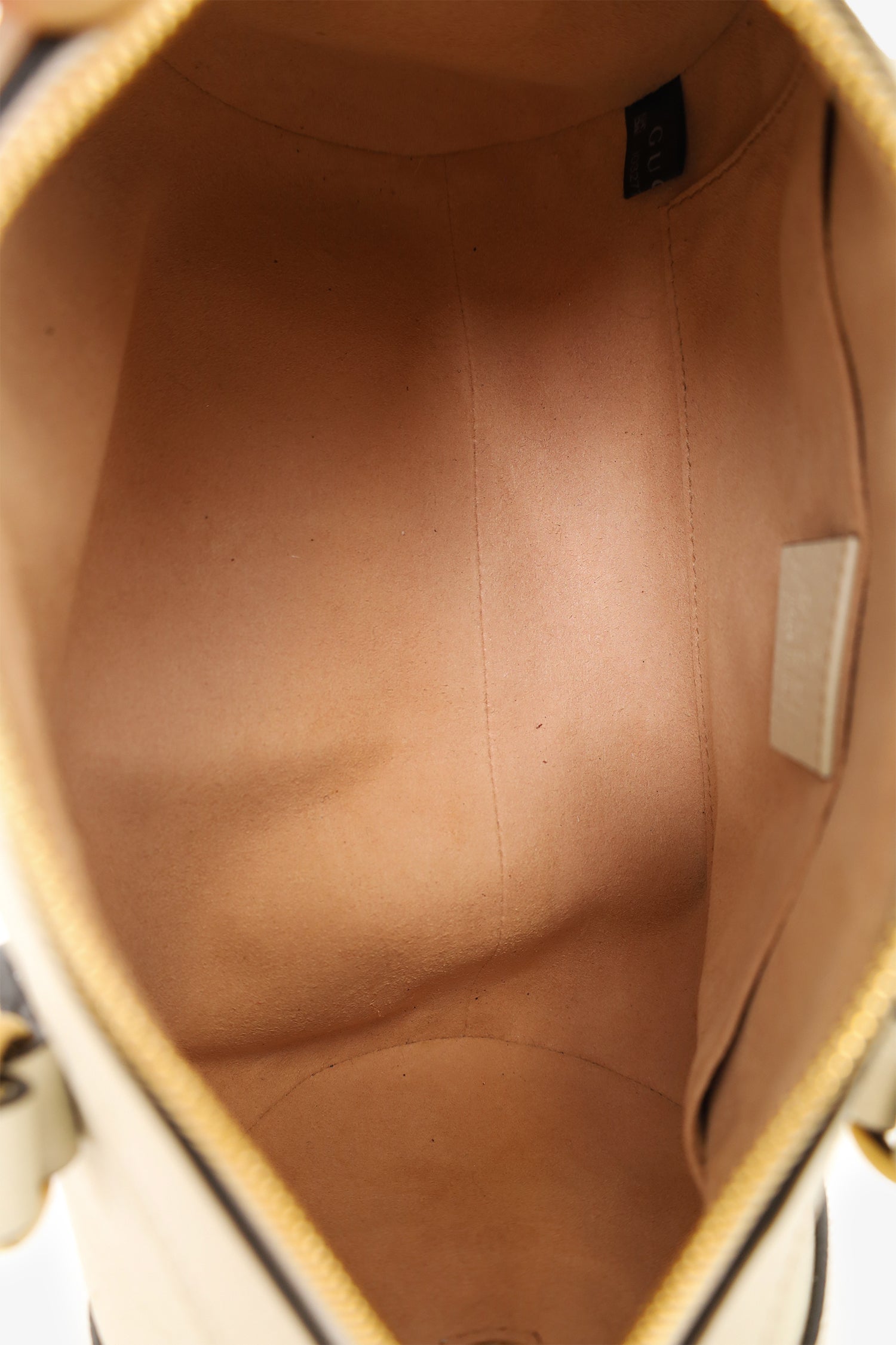 Gucci White Leather Small Ophidia Sylvie Web Boston Bag. Twin handles. Top two-way zip closure with leather pull tabs. Removable (by push-pin closure) and adjustable (by buckle closure) crossbody strap. Suede-lined interior. Single wall interior slip pocket. Gold-tone hardware. Tonal stitching.