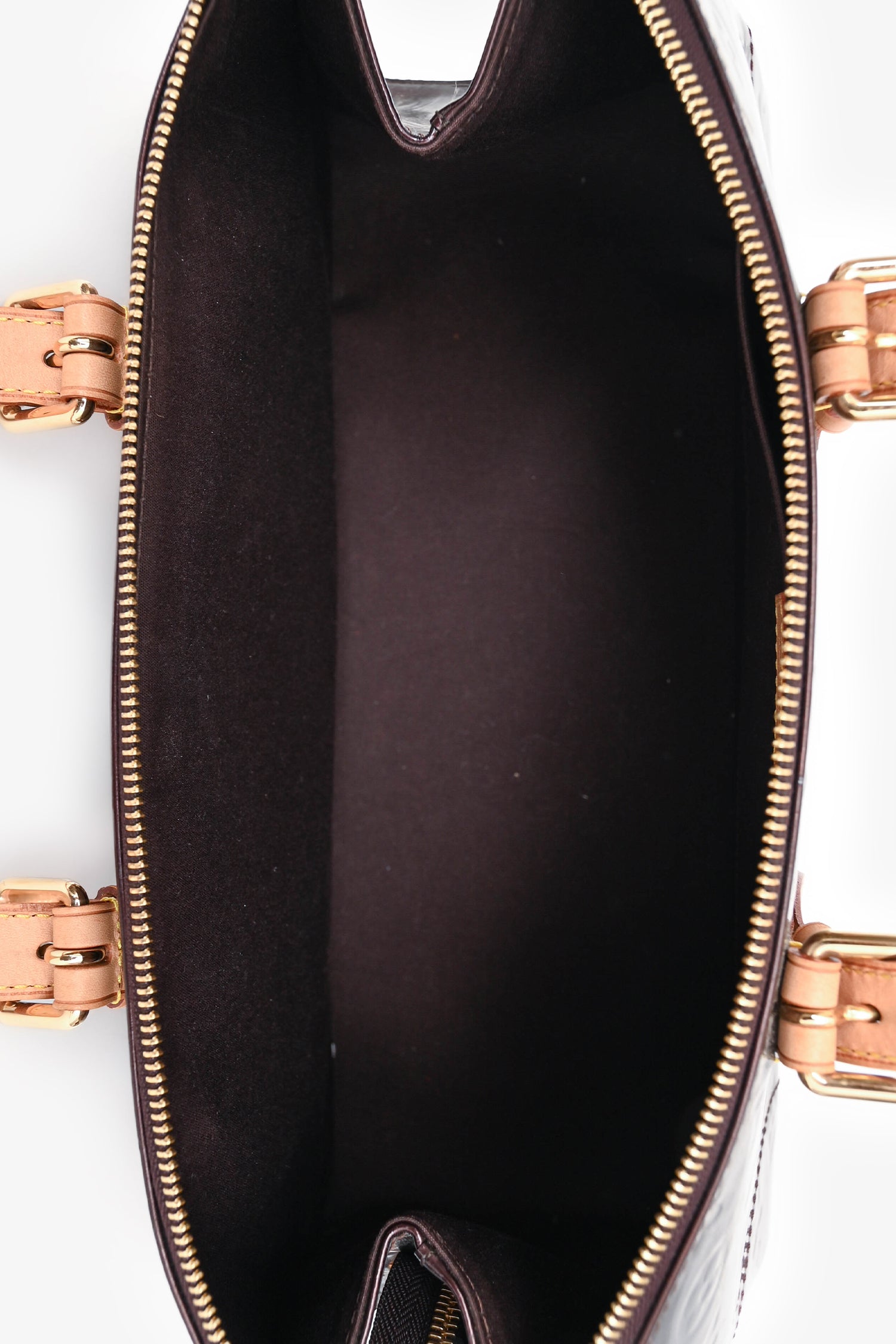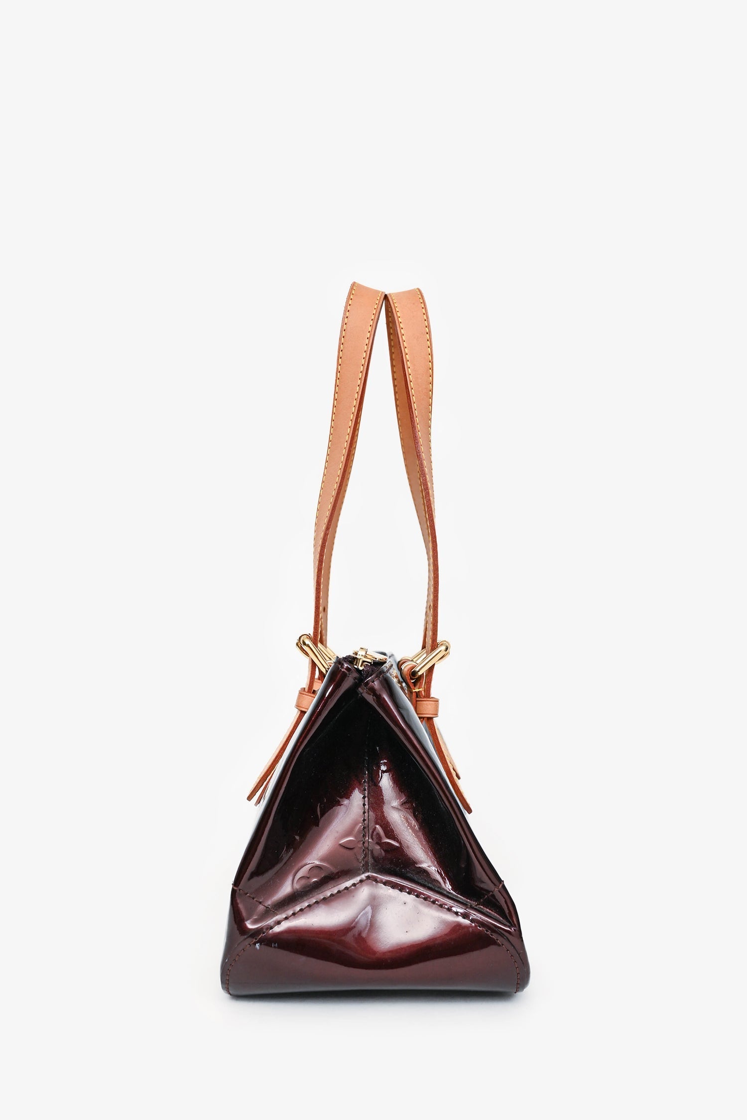 Louis Vuitton Amarante Vernis Rosewood Avenue Shoulder Bag. Leather trim. Gold-tone hardware. Exterior slip compartment. 2 top handles. Lined interior with a single compartment. Tonal and contrast stitching.